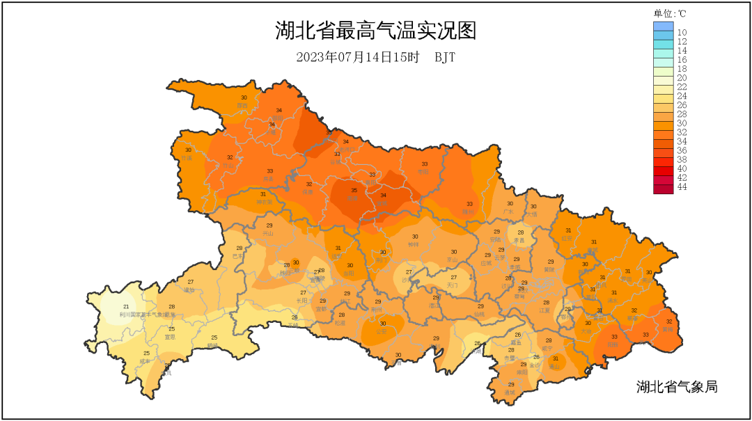 全省晴天到多云,其中鄂东北东部、鄂东南局部有阵雨或雷阵雨。