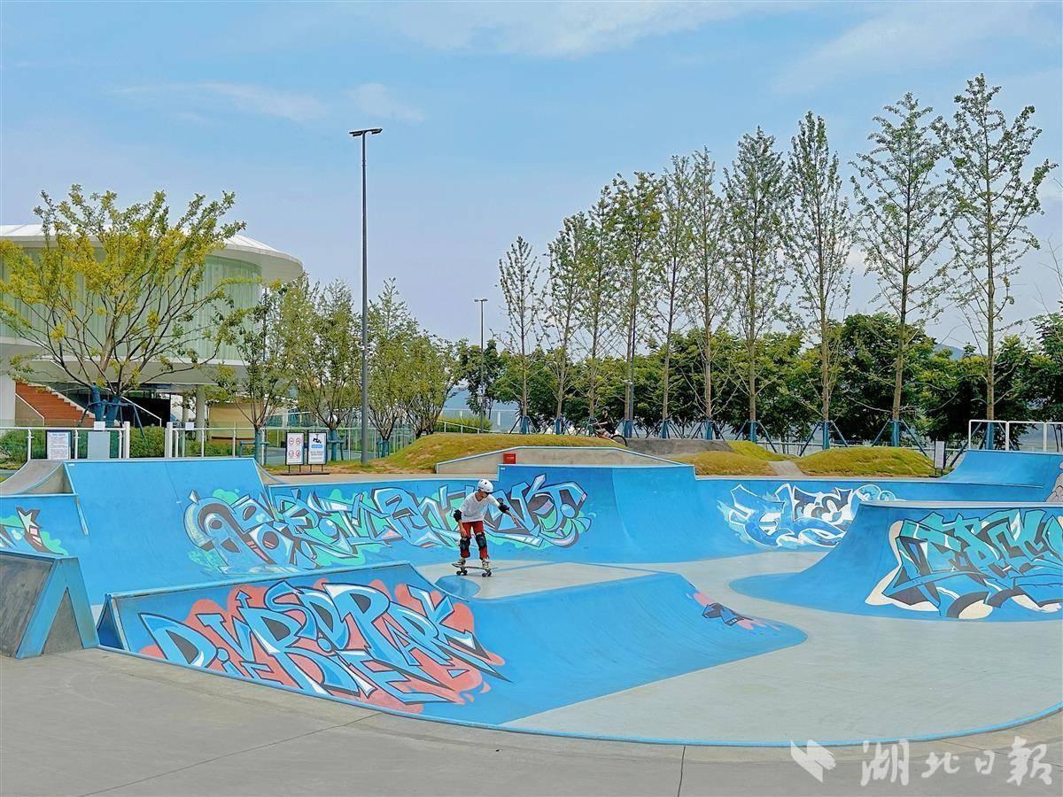 滨江公园活力区打造极限运动区,滑板碗池、BMX小轮车越野赛道吸引了不少潮酷少年。(湖北日报全媒记者刘宇摄)