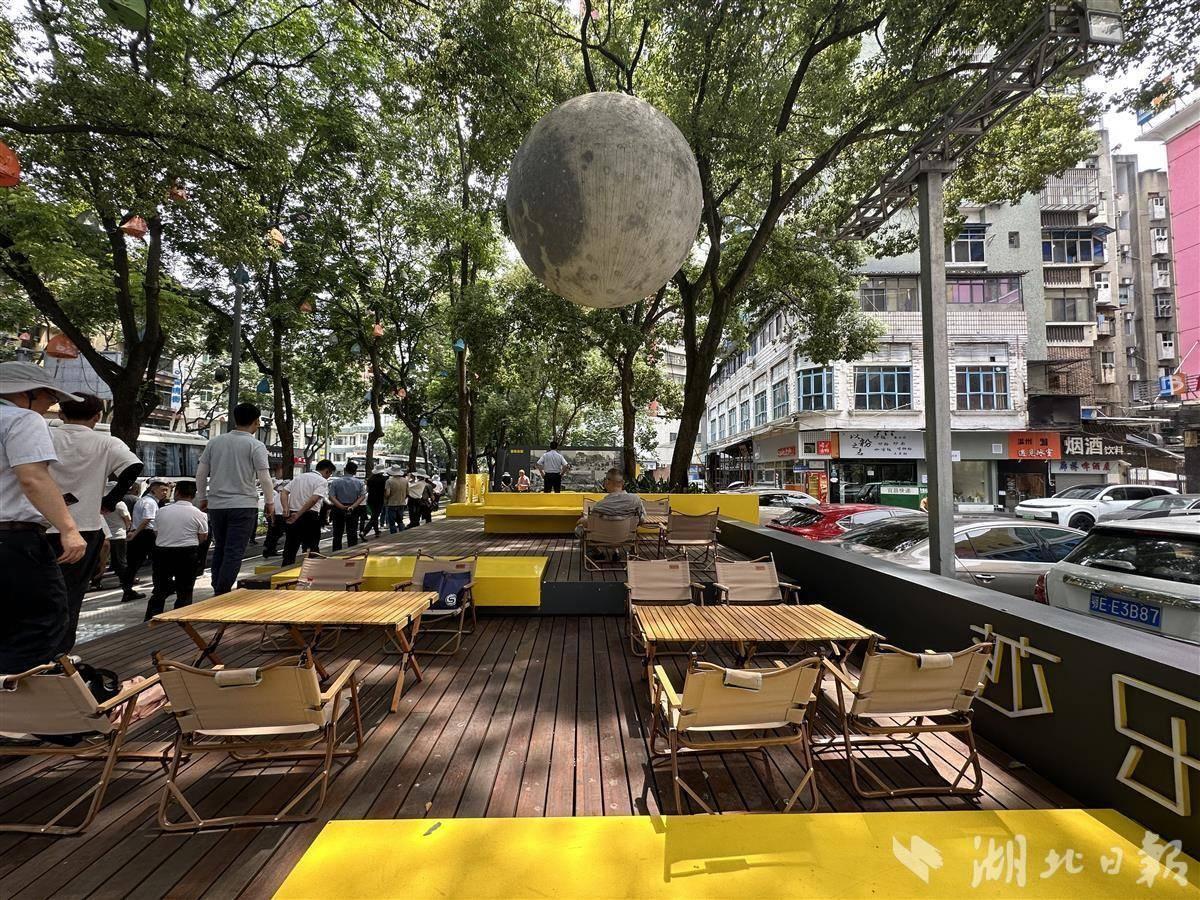 改造过程中,宜昌坚持街道一体化设计,拆掉围墙、迁改箱杆、拓展空间,将沿街10多处边角空地打造成百年云集系列场景,比如露天酒吧、林下电影院等,实现“步步是风景、处处是记忆,200米可歇脚、300米可游园”。