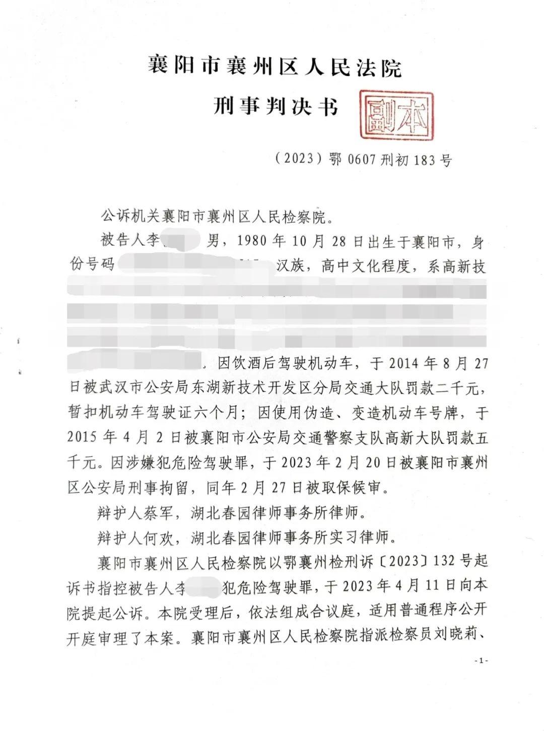 酒驾、醉驾实则是给生命“砍价”襄州区人民检察院审查后依法对李某做出起诉决定,近日,法院以李某犯危险驾驶罪判处李某拘役五个月并处罚金一万元。