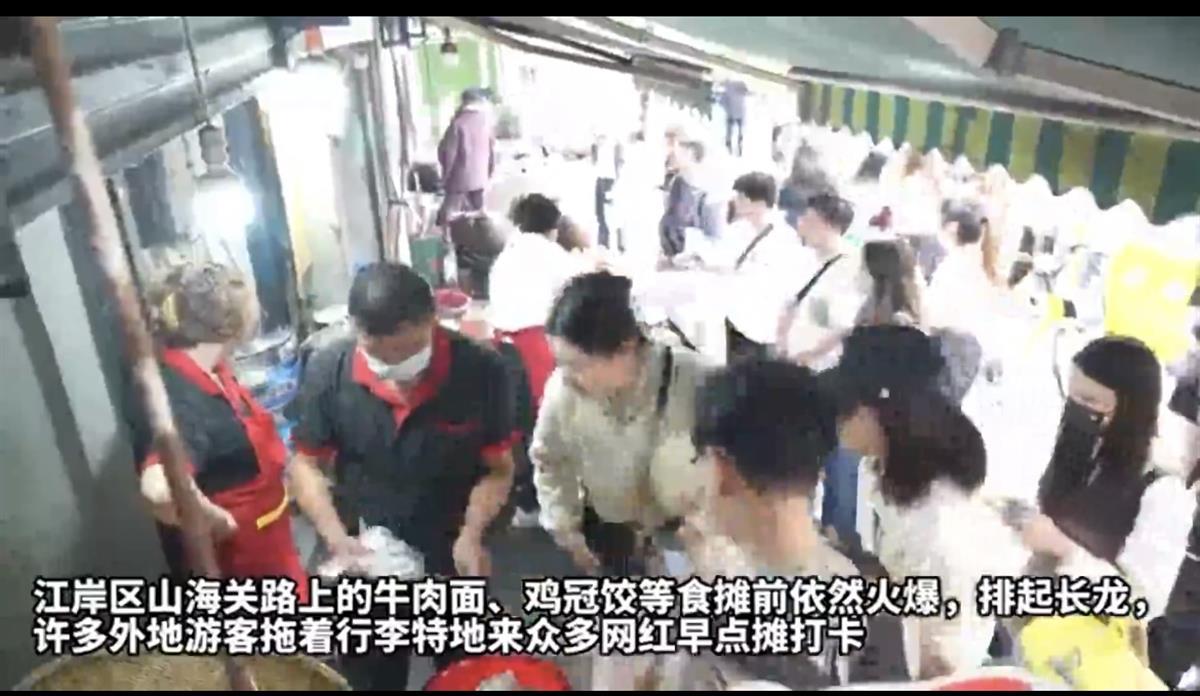 一间食堂藏着人间烟火,一味食物记录着温情暖意,都说舌尖上的武汉,是藏在犄角旮旯里面的地道武汉美食。短视频爱好者涂涂提交了短视频《“特种兵”打卡山海关路》,来武汉打卡的大学生“特种兵”,第一站便选择在江岸区的山海关路,视频中,来来往往的游客在店铺前排起了长龙,等待着美食出炉。李记鸡冠饺、双黄牛肉面、毛氏汽水包、燕子煨汤馆、汪记鲜鱼糊汤粉……数十种美食可以在这里一次吃过瘾,让来过的食客流连忘返。