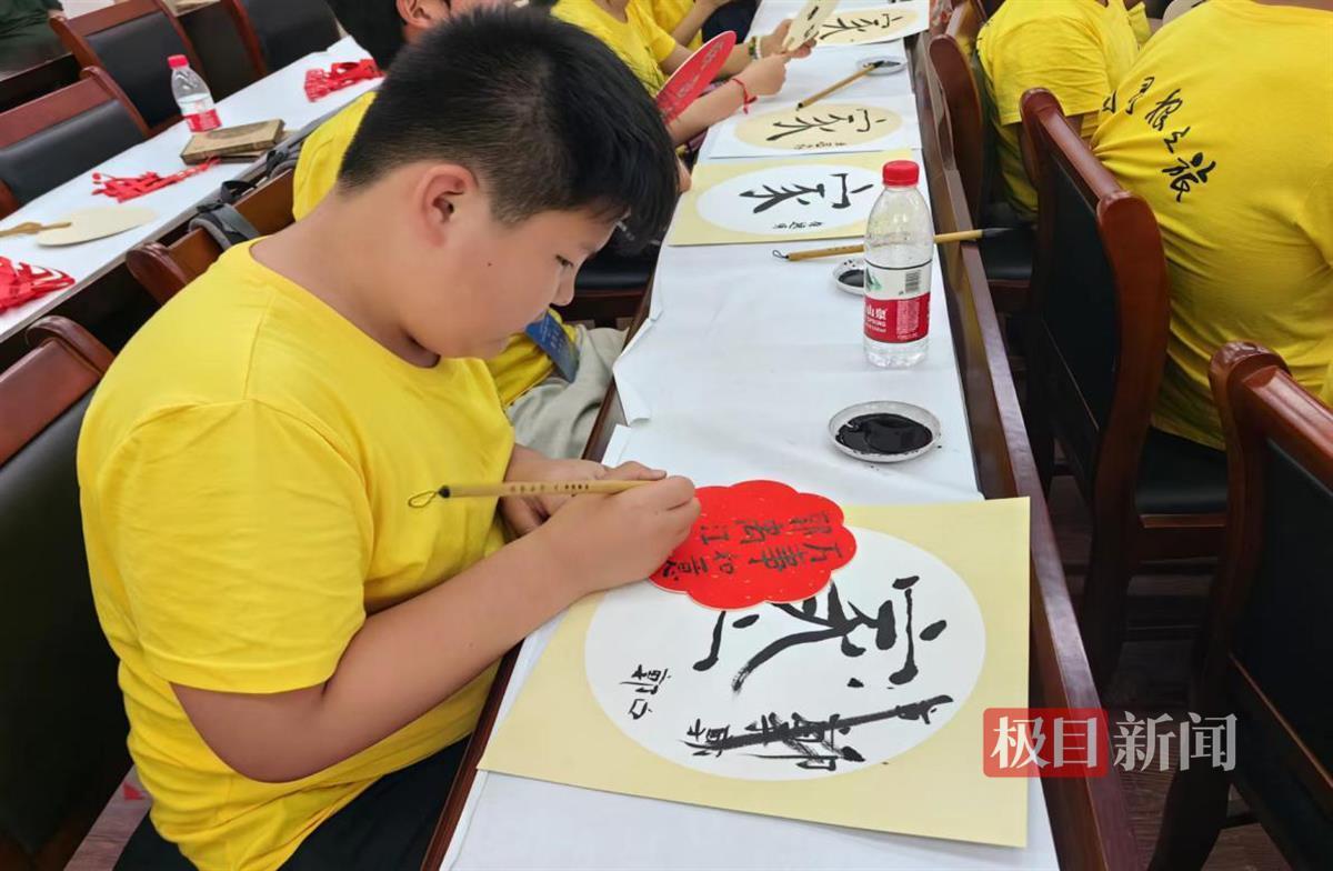 在书法课堂上,营员们了解了中国书法演变的历史过程,毛笔的制作工艺和类别,书法的技巧步骤等。每个人都兴致勃勃,一笔一画认真练习,课堂气氛非常活跃,大家相互交流书法心得,品评书法作品。本次书法课程让营员们在一竖一横、一撇一捺中感受着中华传统文化的博大精深和中国书法的独特魅力,点燃了他们对中国语言文字的学习兴趣,激发了他们传承弘扬中华优秀传统文化的热情。来自德国的郭禹江开心地说:“今天第一次动手写书法作品,是一次新奇的体验,此次活动增加了我对传统文化的理解,也使我更加热爱中国传统文化。”