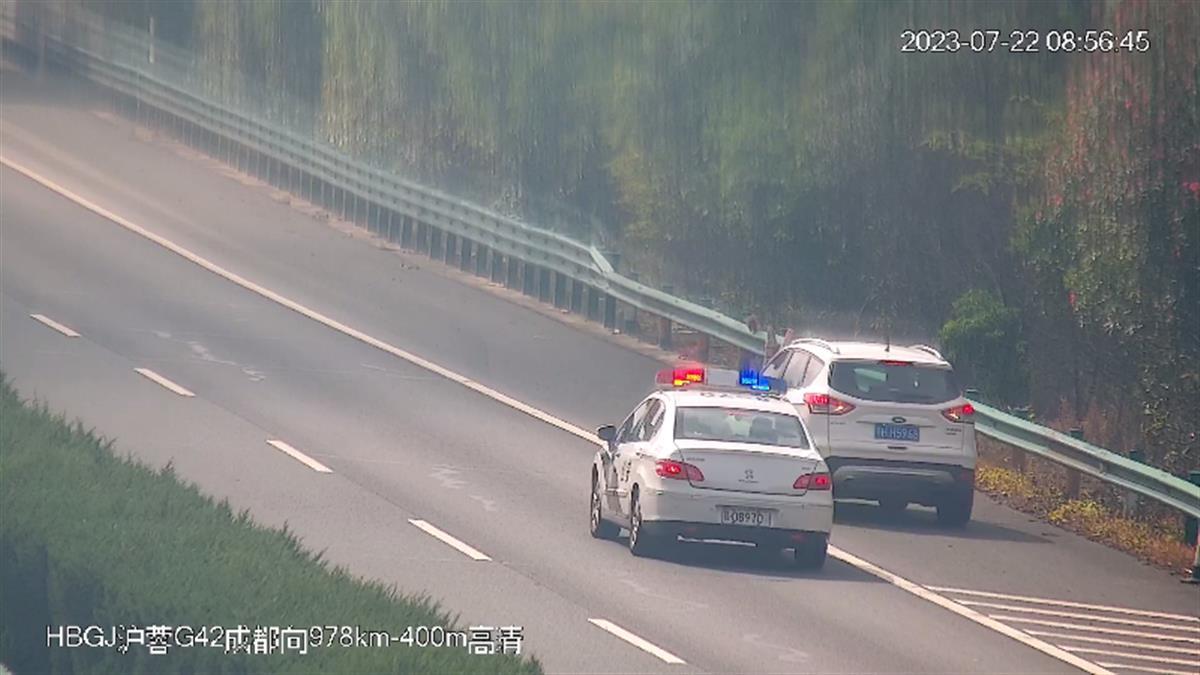 7月22日上午8时许,湖北高速交警“云哨”视频巡查发现,在沪蓉高速钟祥路段,一辆白色小车驶过屈家岭收费站匝道口后停下,驶入应急车道,接着开始倒车,车辆纷纷避让,情况十分危险。正巧,湖北高速交警钟祥大队民警巡逻经过此处,也发现了该车,民警对该驾驶员喊话,要求其前往附近京山停车区接受处理。