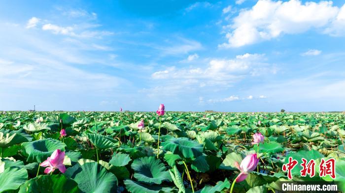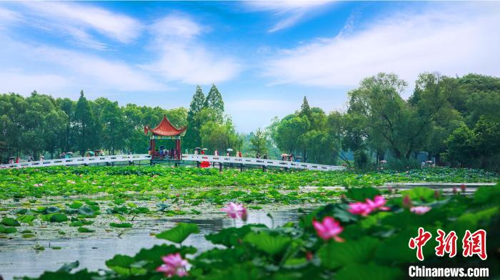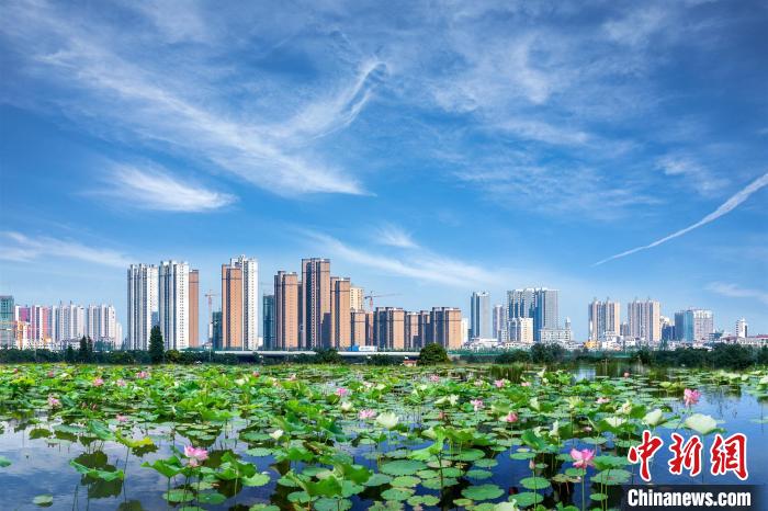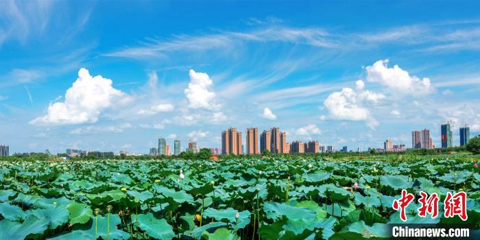 荷花为城市点缀上梦幻般的粉色。孙昌文摄