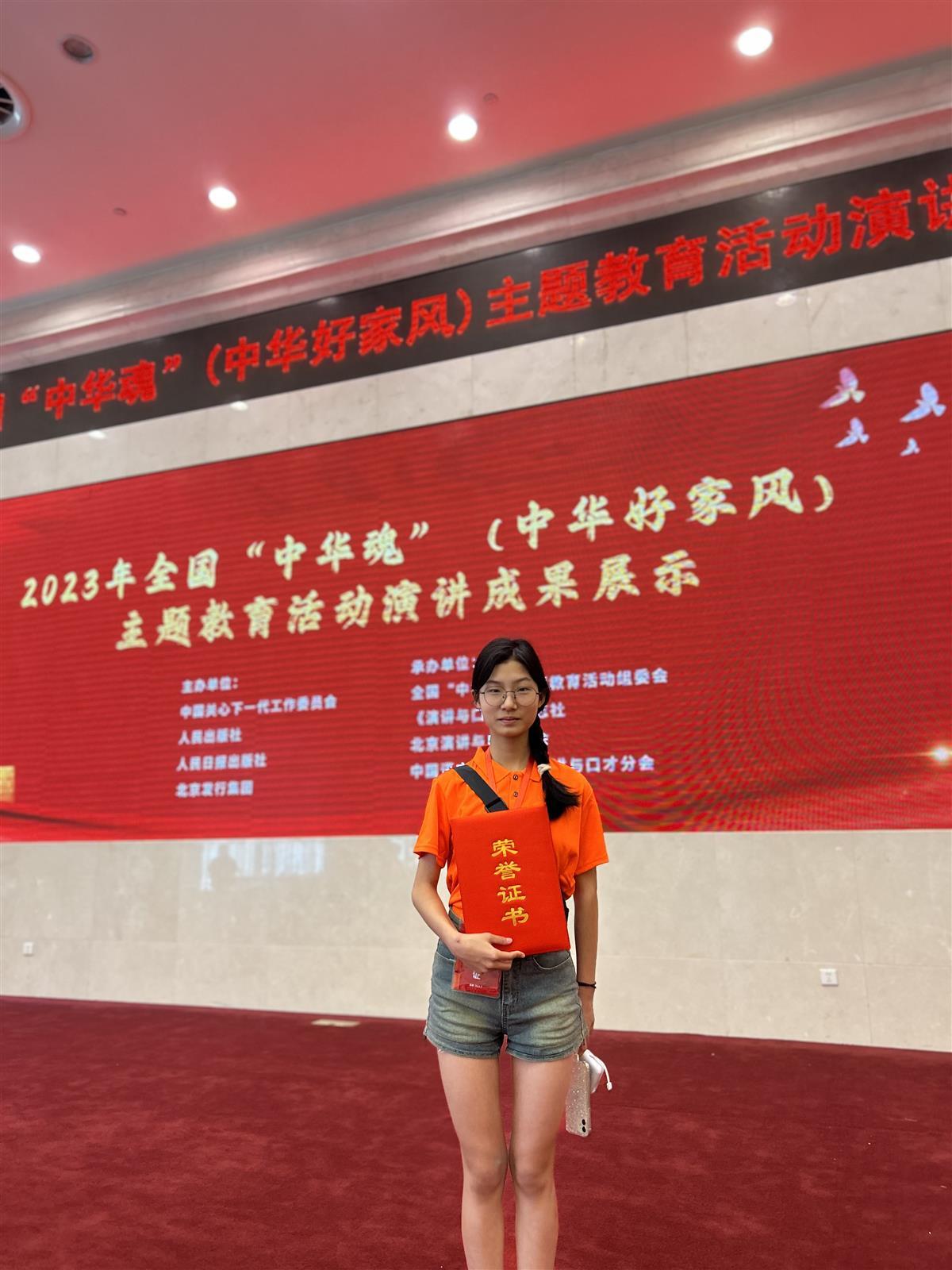 活动中,黄煊琪和明晓晨参加了全国“中华魂”主题教育活动演讲成果展示。明晓晨参加青年组的演讲,题目为《小与大 家与国》,她一身警察制服穿在身上,像一棵坚韧笔直的松树,将自己三代从警的家风故事娓娓道来,结合在监区工作的感悟谈家与国,获得99.43的高分,获得一等奖。黄煊琪的演讲题目为《遇见春联 遇见美好》,通过家庭30年、三代人坚持写春联的故事讲述家风,获得96.66的高分,在27名选手中居第9位,获得三等奖。“这个成绩是属于我们团队的,备赛的过程中大家给了我很多指导和帮助,能登台讲述湖北好家风,我也很自豪。”明晓晨说。