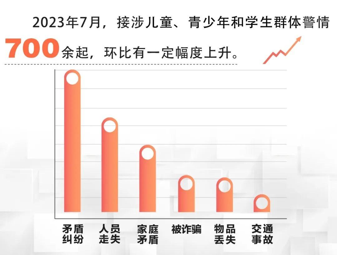 炎炎夏日,快乐暑假,无论是“读万卷书”还是“行万里路”,青少年及儿童都要把“安全无忧”牢记在心。2023年7月,湖北警方共接涉儿童、青少年和学生群体警情700余起,环比有一定幅度上升。