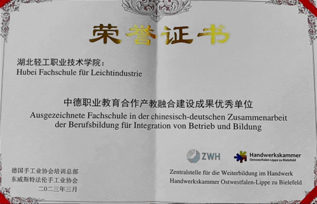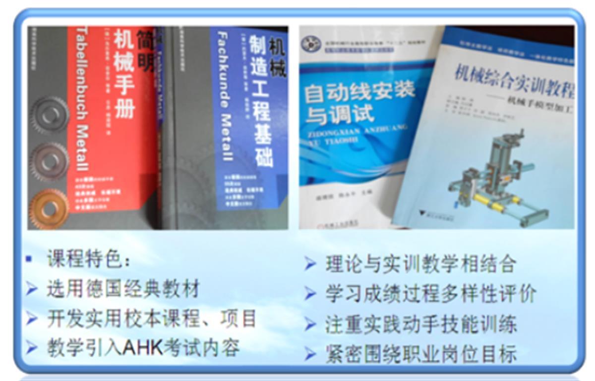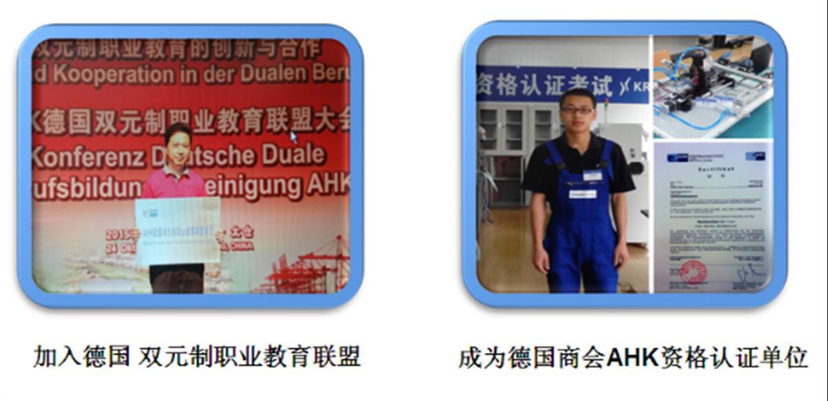 机电学院依托德国“双元制”的教学模式,依托德国工商行会(AHK)上海办事处,依托湖北省企业发展促进会,依托华中数控股份有限公司、德国KRONES公司、中船重工、农夫山泉、百威啤酒等一大批大中型企业,进行特色鲜明的高等职业教育教学, 坚持与合作企业“人才共育、资源共享、就业共担”,积极探索“工学交替”、“项目化教学”、“订单式培养”等育人模式。2019年6月,我院新能源汽车专业获得全国首批“1+X”制度试考资格。德国工商行会上海分会(AHK)把机电学院列为AHK的培训和考试单位,已经与机电学院合作开展了AHK的机电工和数控工的培训和考试。获得AHK职业资格证的毕业生不仅可以到德国在华的企业应聘,还可以到欧洲在华的企业应聘,机电学院努力为每一个专业的学生提供AHK的培训和考试的机会。