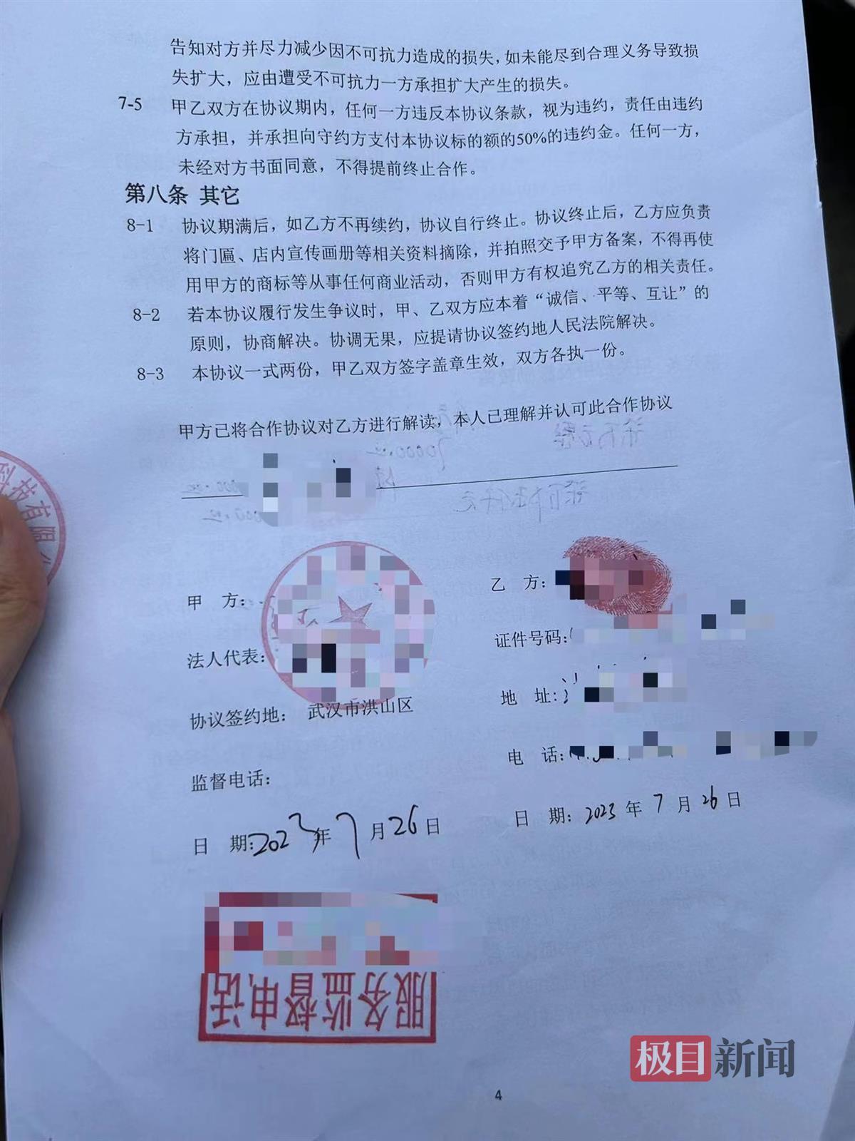 在双方的合同上,记者看到还规定,协议签订之日起,除首批货物外,如果廖先生无故连续三个月不进公司产品,且无任何书面说明的,视为乙方自动放弃经销合作权,本协议自动终止,此外还规定协议期内,任何一方违反本协议条款,视为违约,需要向守约方支付协议标的额的50%的违约金。
