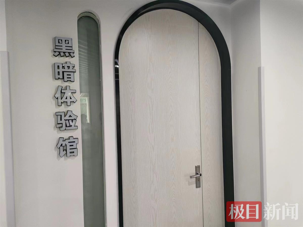 在工作人员的带领下,极目新闻记者进入体验馆,房门关闭,窗帘放下,整个体验馆立即变得伸手不见五指。虽然有工作人员在旁边提醒,但是“听音辨位”对极目新闻记者来说并不容易,找不到方位,也不敢迈步,不知不觉已经和前面的体验者拉开了距离,这更加大了找到前进方向的难度。这也让极目新闻记者切身体验到,为什么在很多大型活动场合,盲人会用手搭肩的方式,排成一字长列前进,因为没有前面人的帮助,靠自己的摸索确实很难辨别方向。在工作人员和其他体验者的提醒下,极目新闻记者终于摸到了墙壁和门框,慢慢跟上了其他人。