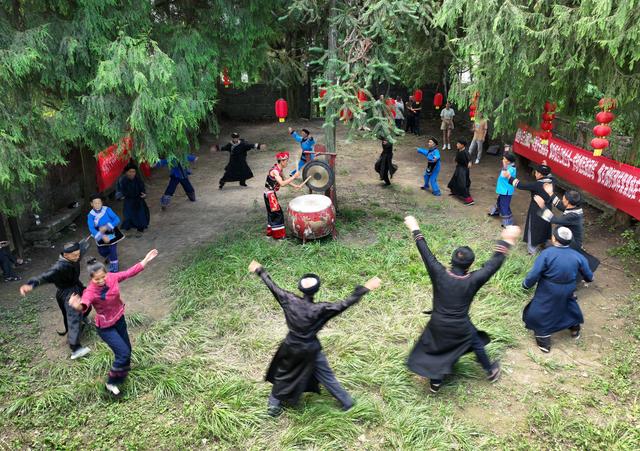 8月18日,湖北省恩施土家族苗族自治州来凤县百福司镇舍米湖村村民在有着数百年历史的“摆手堂”前跳起摆手舞。新华社记者程敏摄恩施州地处武陵山腹地,有28个少数民族,少数民族人口占总人口的57.6%,多民族聚居的历史可追溯至春秋时期。