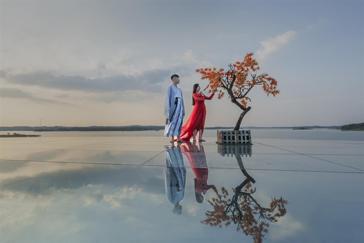 月光海畔,天空之镜,摘一片红叶,许下一生诺言。