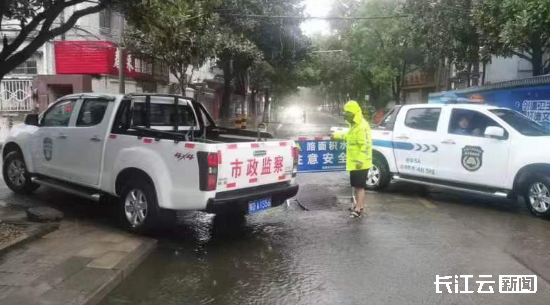 市住建局在城区内积水较多的街道设置警戒线、警示牌并打开雨水篦子