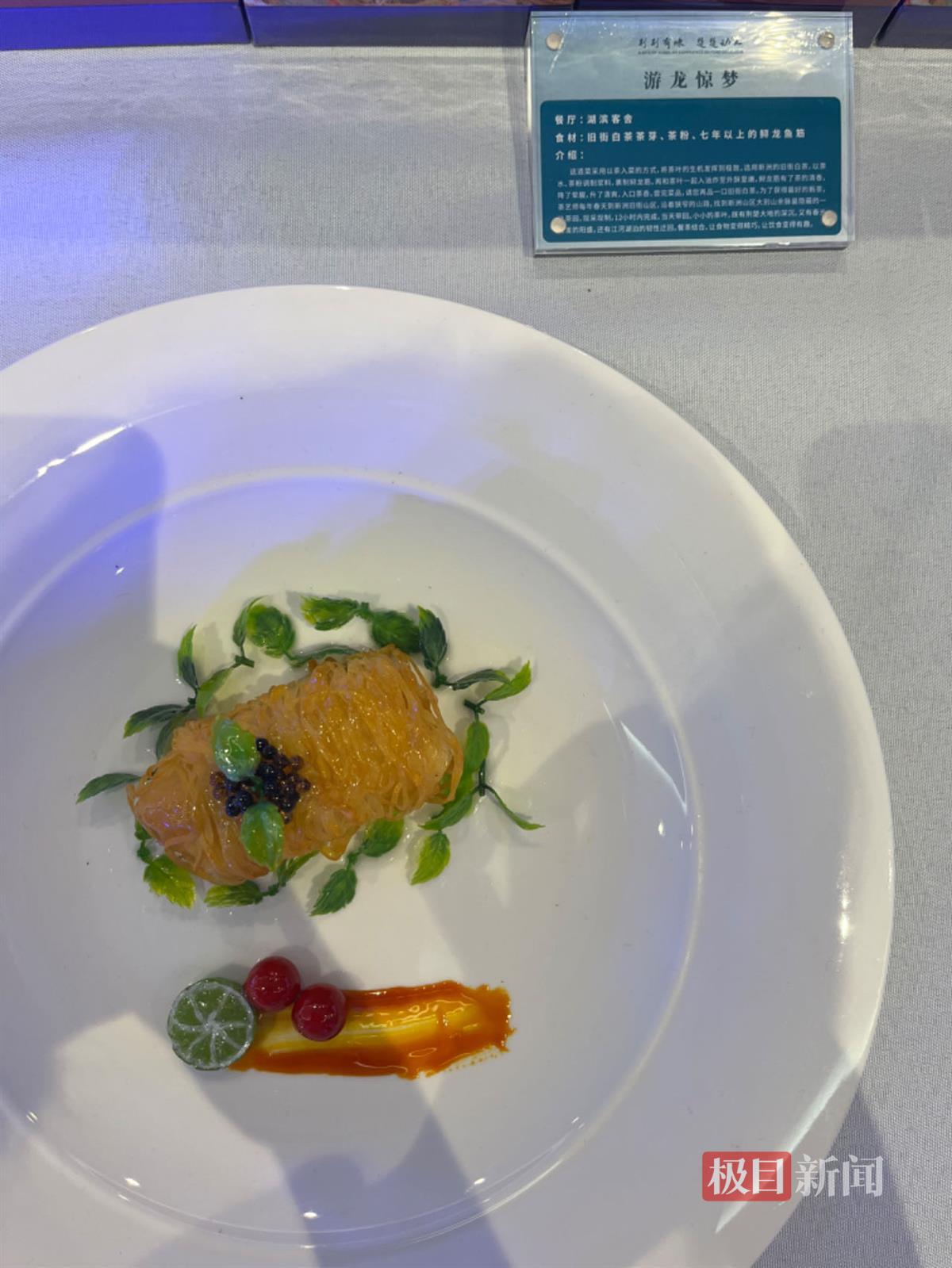 此次获评的创新楚菜,多利用本地食材进行创意烹饪。菜品游龙惊梦即以茶入菜,选用新洲的旧街白茶,以茶水、茶粉调制浆料,裹制鲟龙筋,再和茶叶一起入油炸至外酥里嫩,鲟龙筋就有了茶的清香。蟹鮰绣舞韵葛仙则以湖北荆州的石首鮰鱼和帝王蟹蟹肉为原料制作狮子头,江鲜加海鲜,鲜上加鲜。