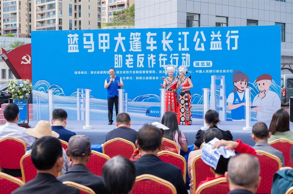 当日,2023湖北蓝马甲行动暨大篷车长江公益行活动正式启动。在过去一个月的时间里,蓝马甲助老防骗大篷车已跨越黄冈、咸宁、孝感、天门、宜昌、恩施等地区县的中心广场开展“助老反诈集市”,走进社区讲课开展志愿者点对点服务,帮助老年人学用智能手机、识别反诈“圈套”。