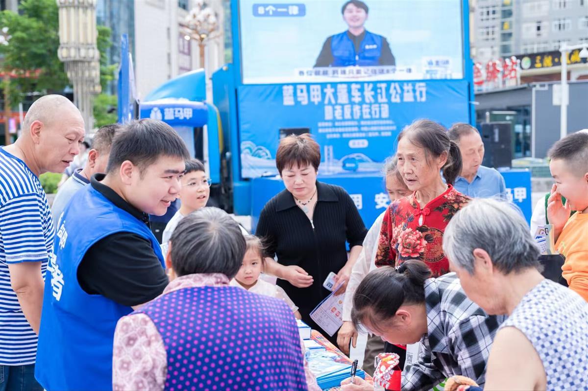 从5月上旬开始,蓝马甲大篷车长江公益行从上海出发,行程数千公里,沿着长江前往安徽、江西、江苏、湖北、重庆、云南等七省市开展活动,全年线下服务将超400场次。