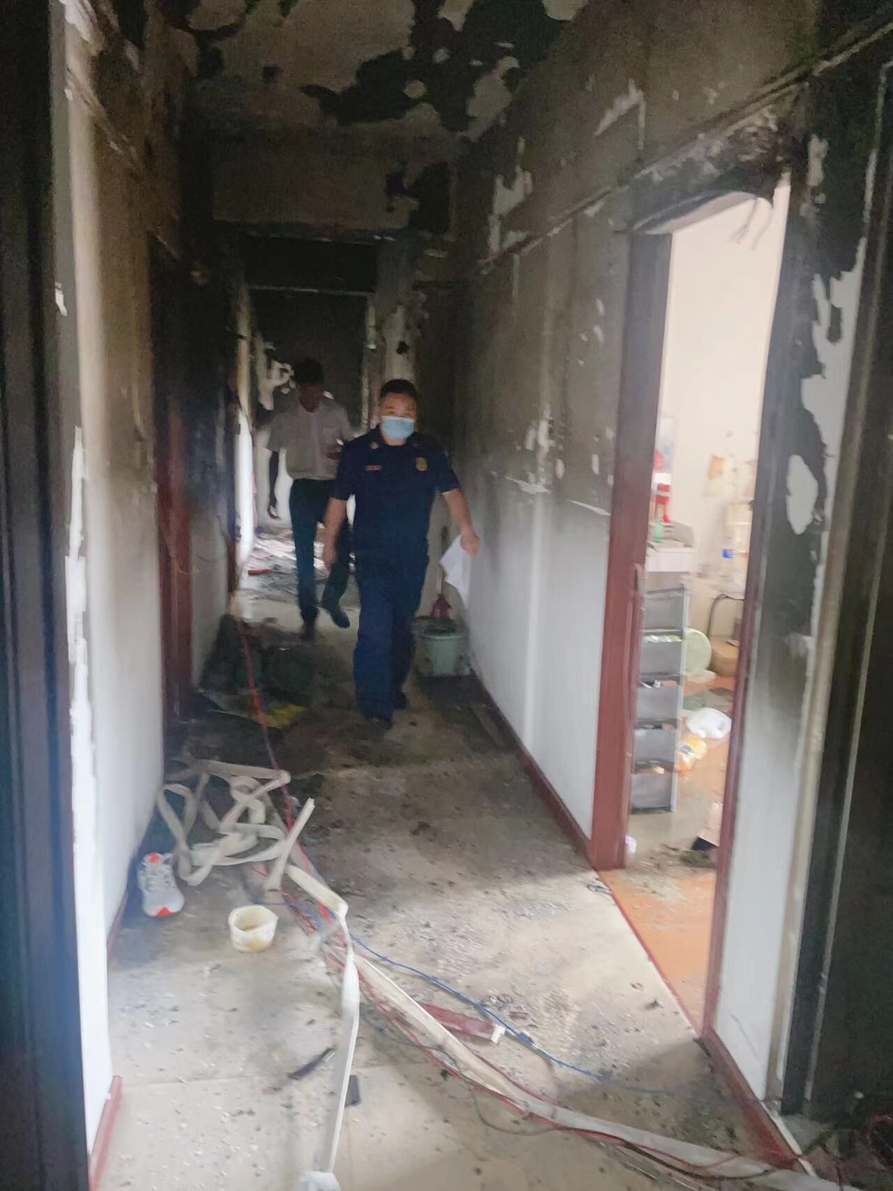 记者从消防通道步行至4层发现,地面仍有积水,起火房屋的大门紧闭,大门外的墙面有被火灾熏黑的痕迹。据楼栋居民反映,火灾源头系403室,该房原为四室两厅结构,出租后被隔断改为6间房出租,晚上6时30分左右起火后,消防队员很快将火灾扑灭,无人员伤亡。