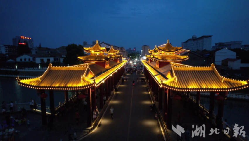 湖北日报客户端讯(通讯员李鸿、何博)夜幕降临,沉鱼湾落雁桥头灯光璀璨。古风徽韵的店铺门楼与沿河游船相互辉映,市民游人络绎不绝,呈现出一派热闹繁华的景象。漫步夜幕下的落雁桥,让您一天劳累的身心放松一下。