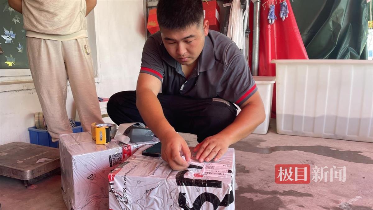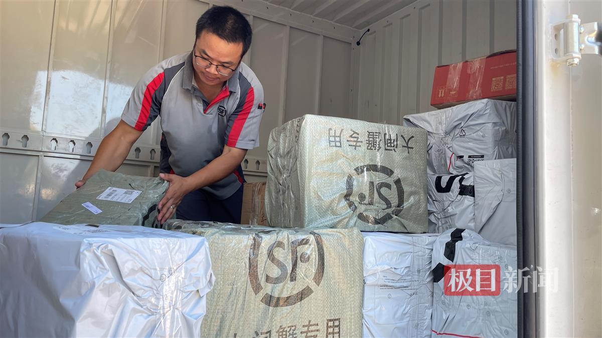 在靠近汈汊湖的汉川和尚咀村里,有一座大型螃蟹养殖基地,同时布局了水产一条街。同往年一样,9月中旬开始,这里的螃蟹逐渐丰收,快递包裹也开始多起来。湖北顺丰仙女业务部在街上设置大闸蟹收寄点,快递小哥张志杰负责街上的快件揽收,将打包好的包裹贴单装车后,在三个小时内要及时送回网点,确保“省内同城,早发夕至”“主要城市、今发明至”。