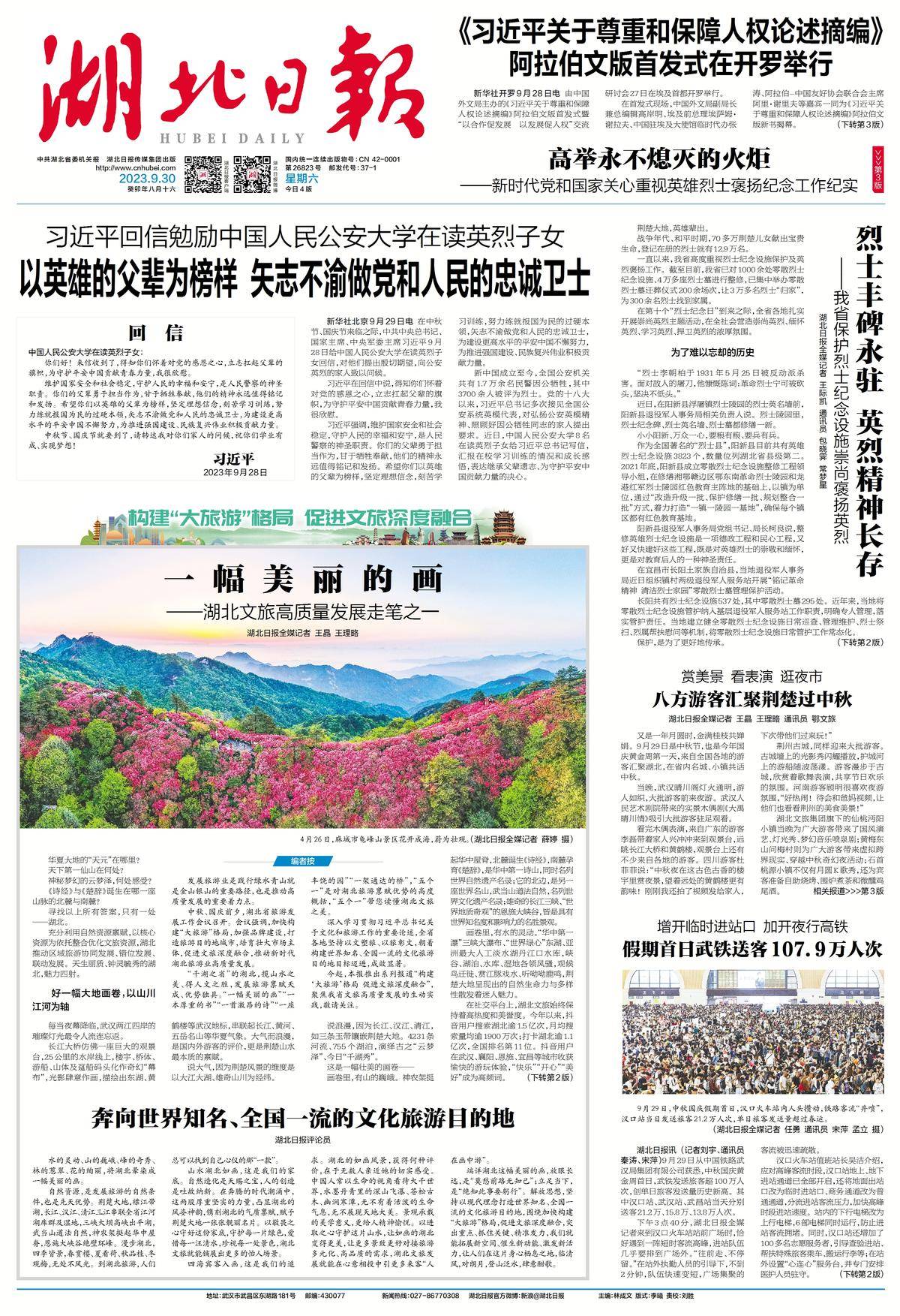 中秋、国庆前夕,湖北省旅游发展工作会议召开。会议强调,加快构建“大旅游”格局,加强品牌建设,打造旅游目的地城市,培育壮大市场主体,促进文旅深度融合,推动新时代湖北旅游业高质量发展。
