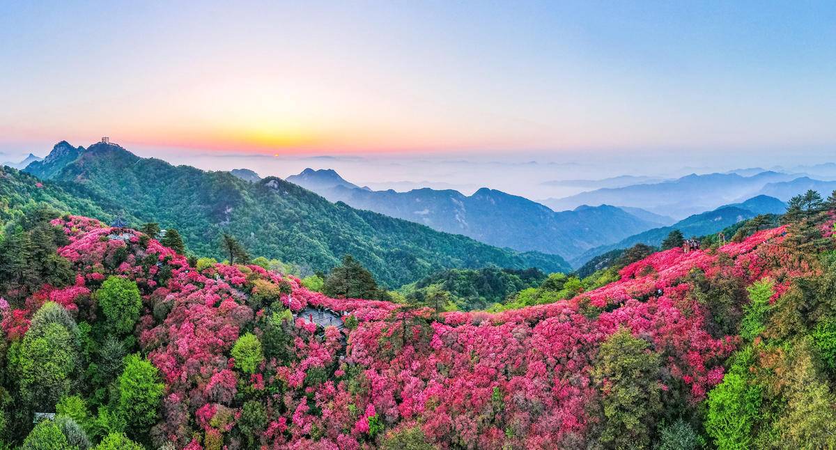 4月26日,麻城市龟峰山景区花开成海,蔚为壮观。(湖北日报全媒记者 薛婷 摄)