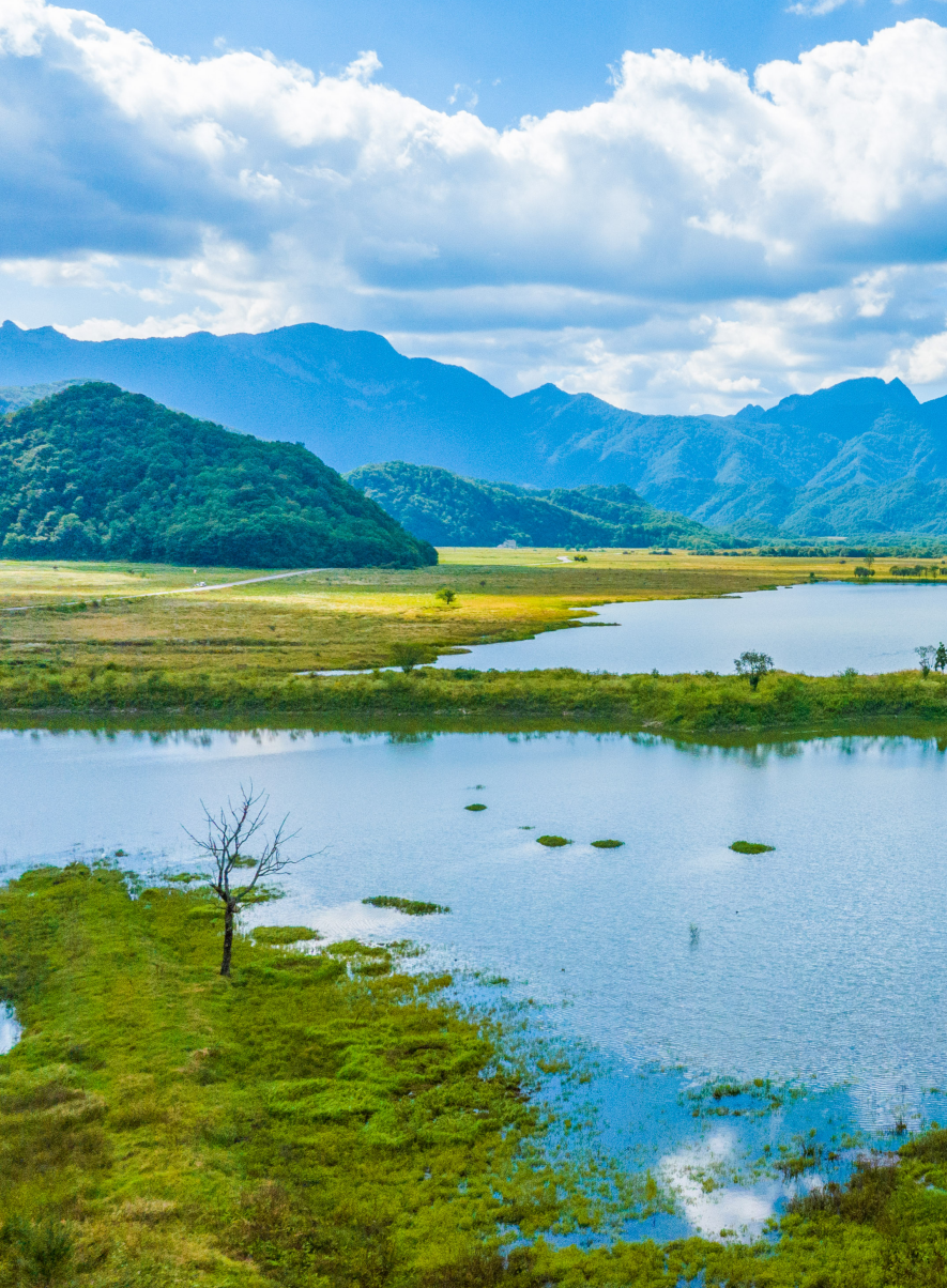 神农架大九湖国家湿地公园,绿水、湿地、白云、蓝天相映成趣,构成一幅美丽的生态画卷。(湖北日报全媒记者 薛婷 通讯员 杜华 摄)