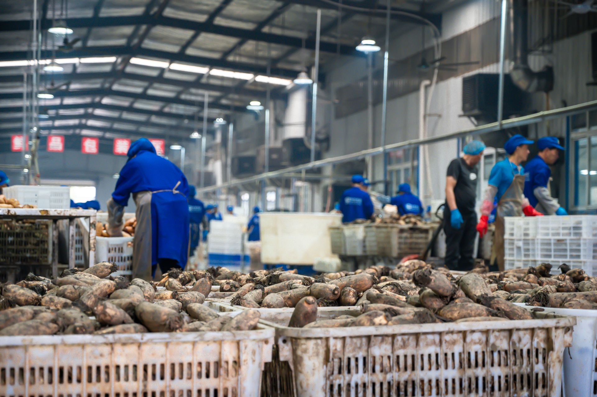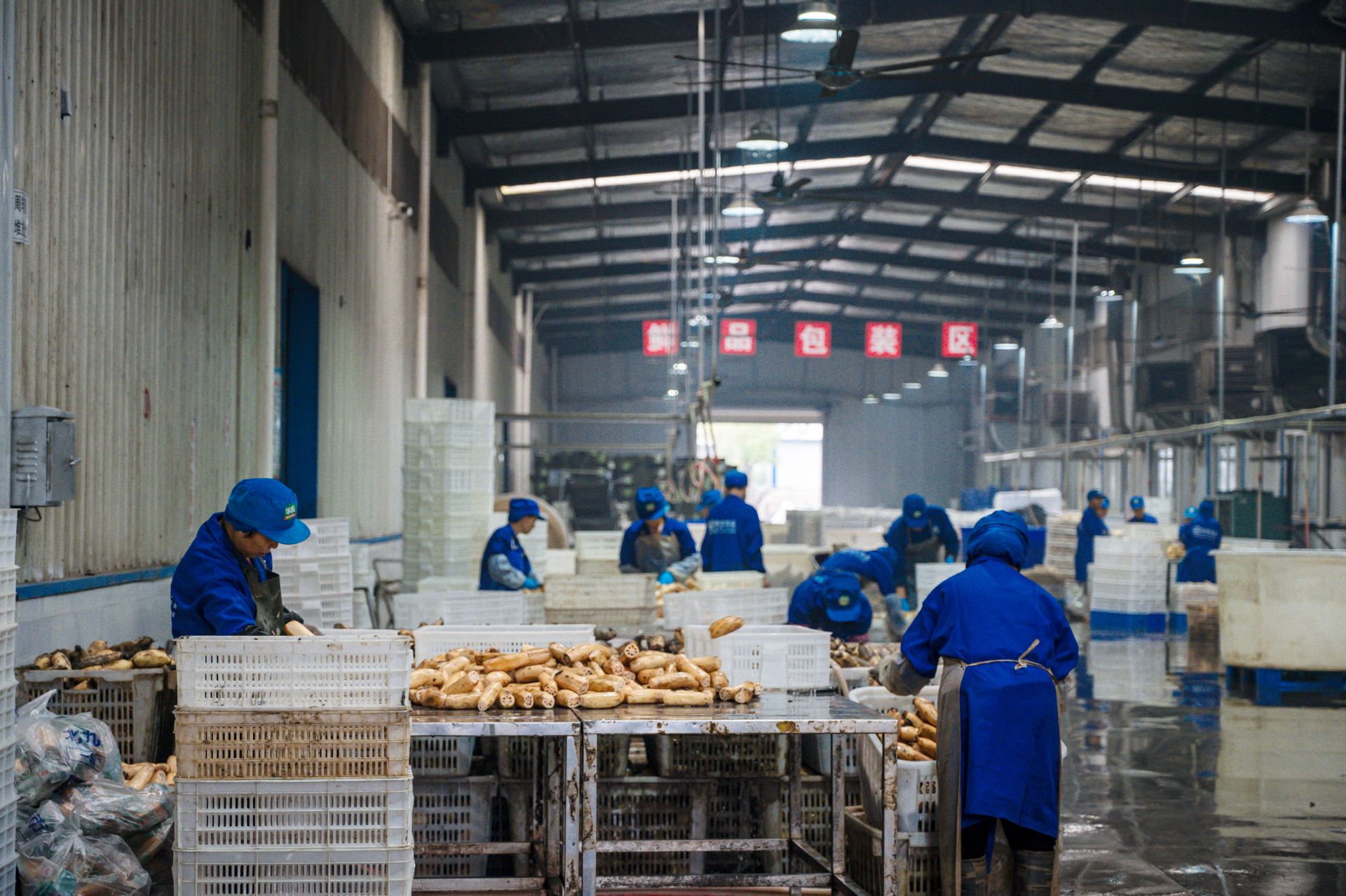 正值莲藕大量收获的季节,厂区内的工作人员忙着装车,卸货,打包,发货,一派忙碌的景象。刚从地里新鲜采摘下来的莲藕就是从这里经历一道道工序,走向全国乃至全世界的市场。