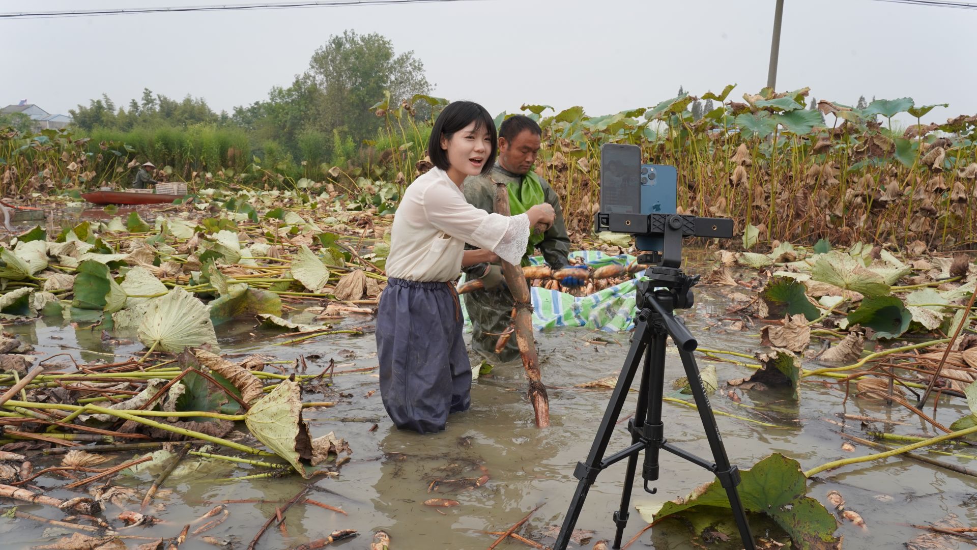 如今的赵美丽,面对直播镜头时头头是道,一年下来,她卖出莲藕2万多斤,菱角30多万斤,成绩斐然。