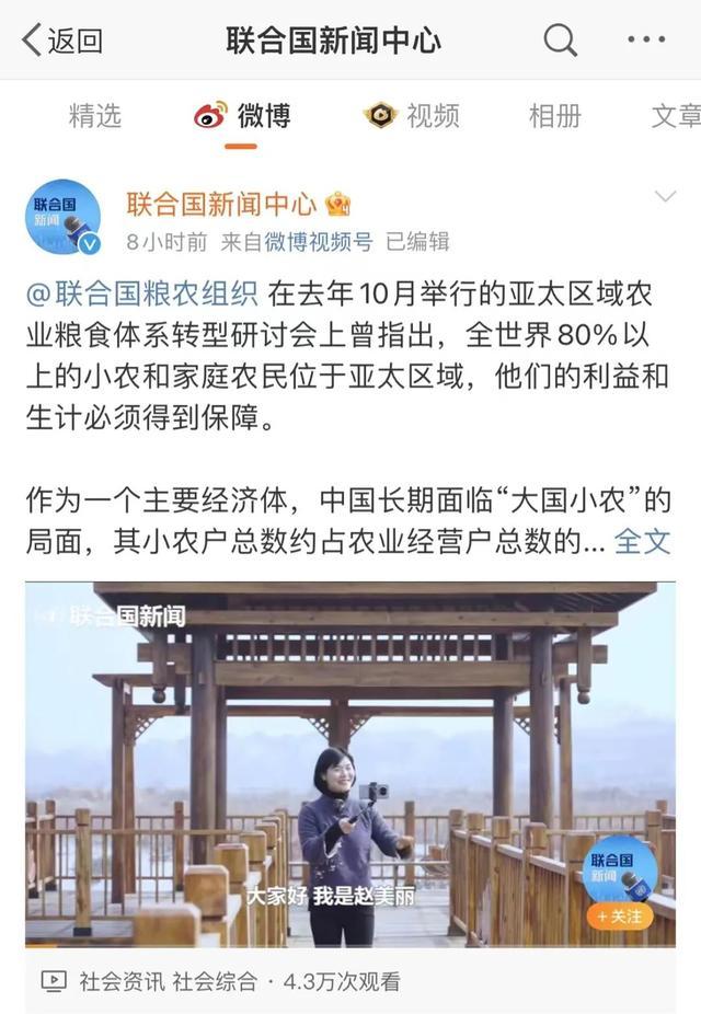 今年2月,“联合国新闻中心微博”走进洪湖,聚焦青年创业者如何为莲藕产业打开一条数字转型之路,大篇幅关注了“新农人”赵美丽助力洪湖莲藕销路实现数字化转型的故事。