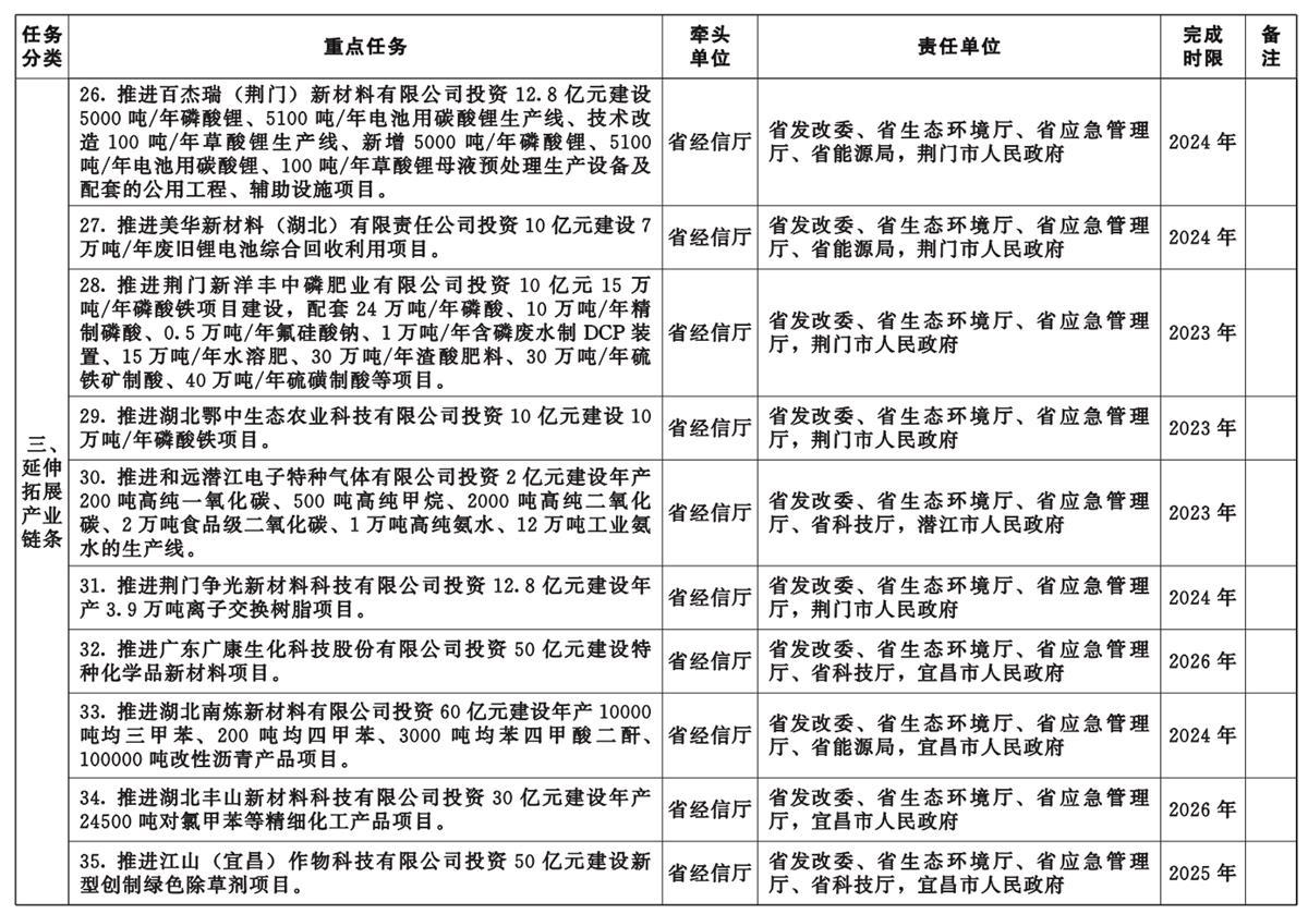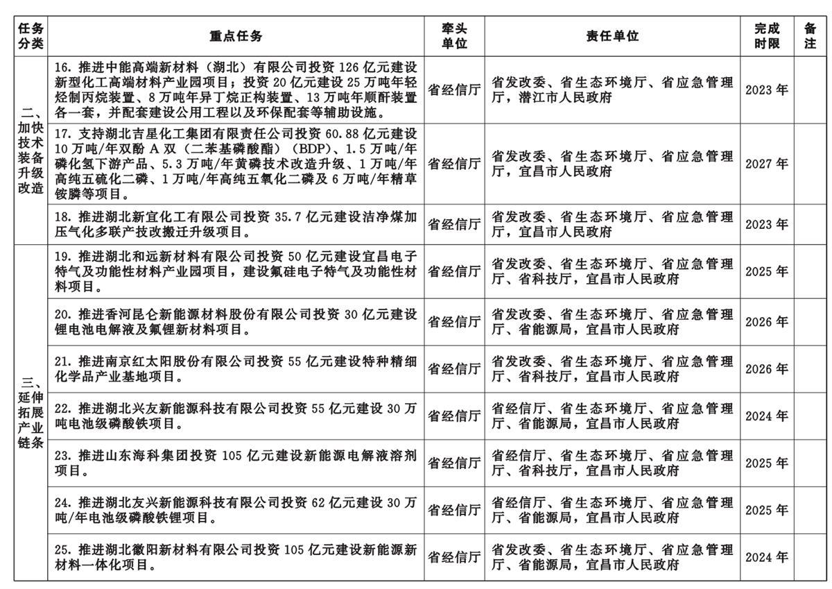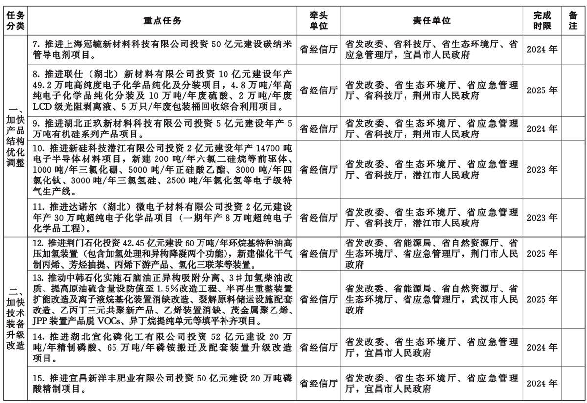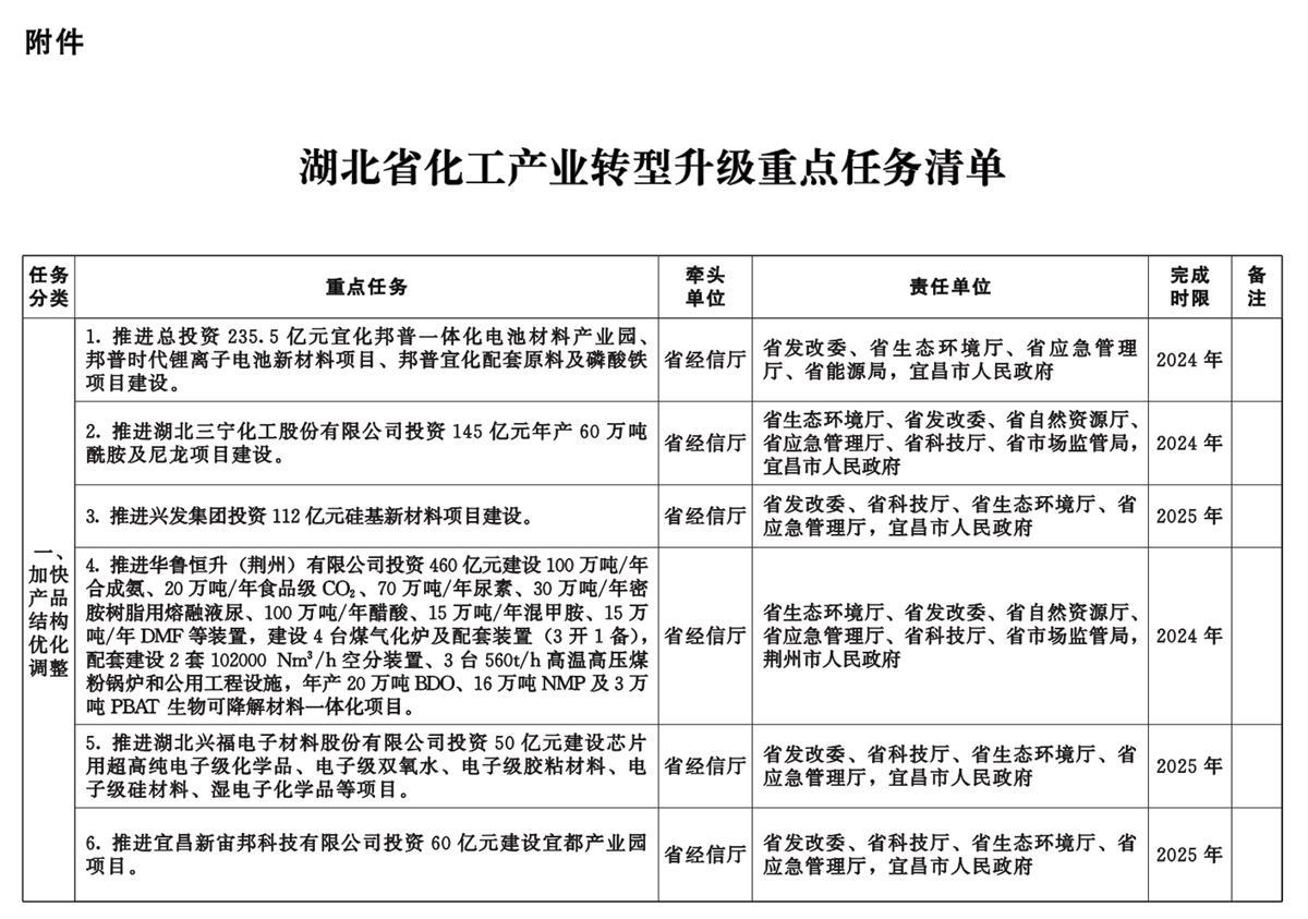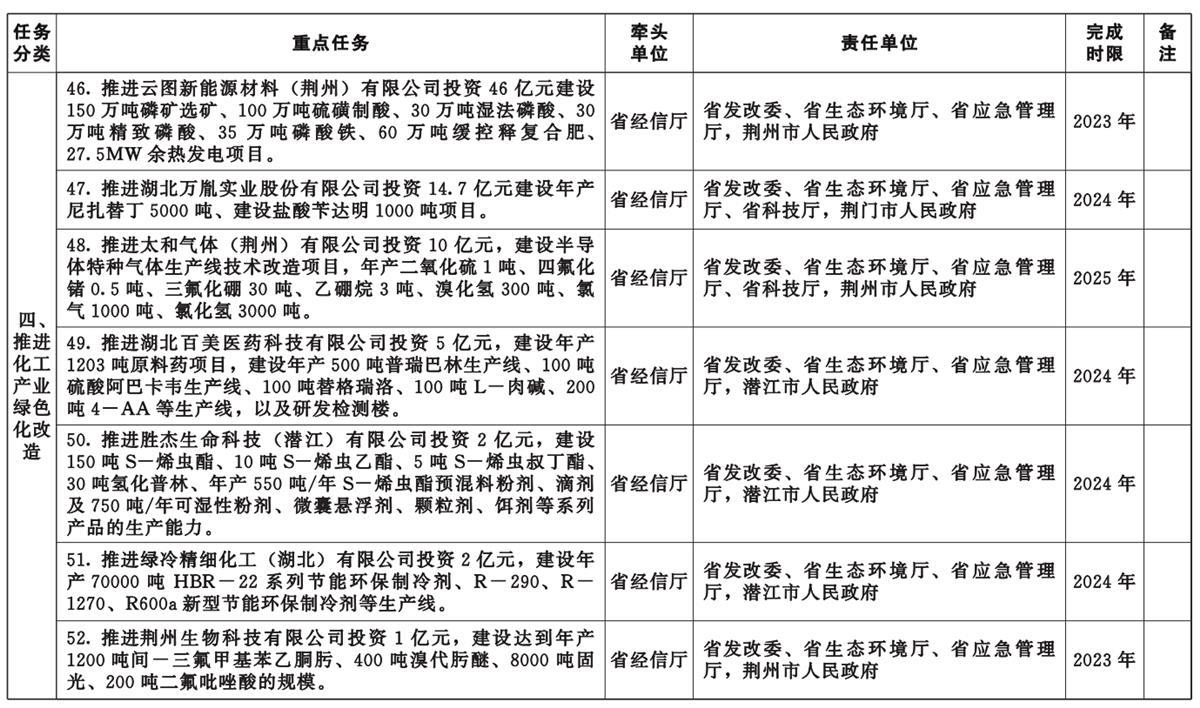 湖北省化工产业转型升级重点任务清单同时发布,共52项重点任务,均计划在2027年之前完成。