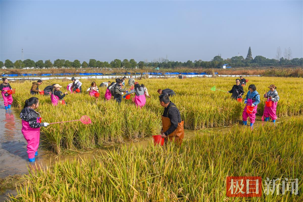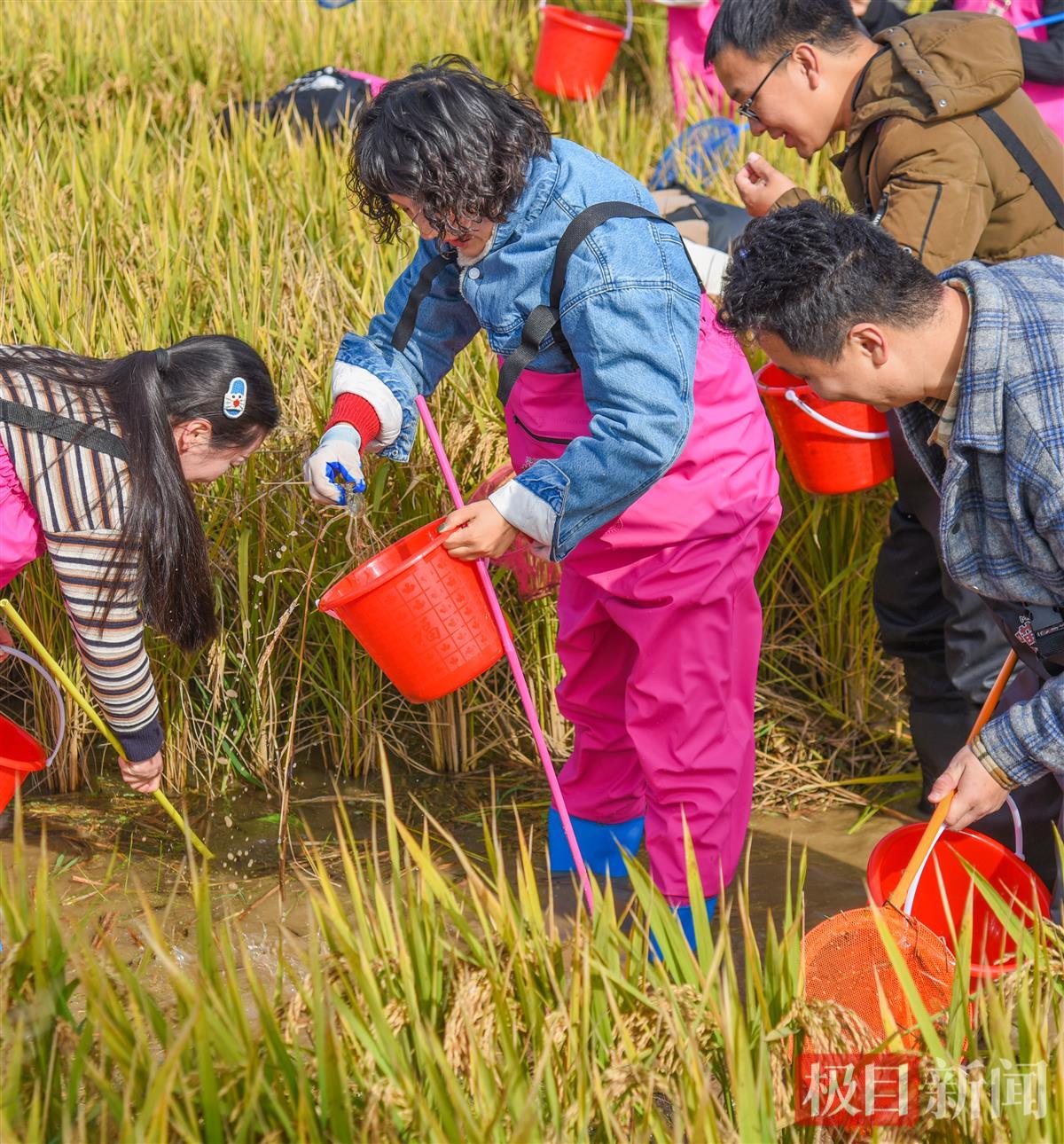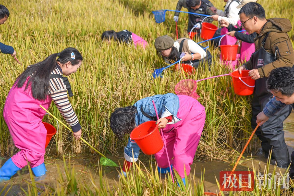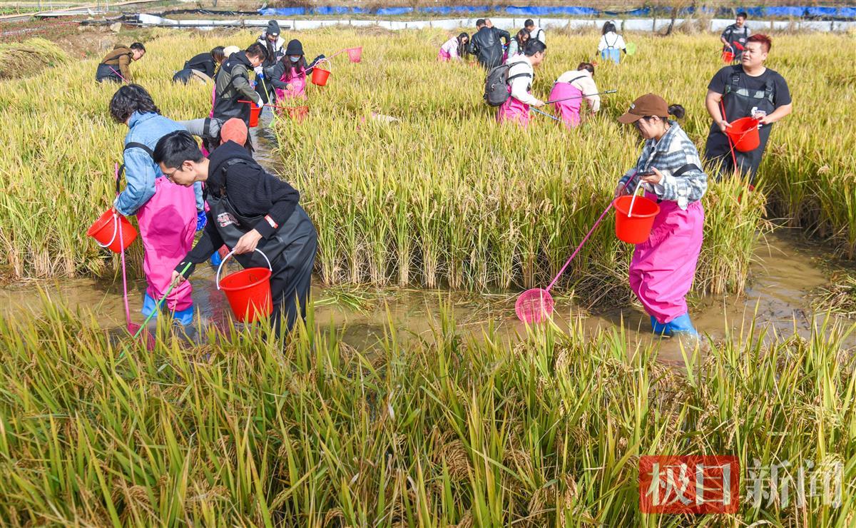 最近几天,一款“9.9元抓螃蟹”的体验项目刷爆了互联网平台,吸引了不少游客纷至沓来。极目新闻记者在喵象农场的一处水田看到,慕名而来的游客穿着雨裤,提着水桶,深一脚浅一脚地在稻田的淤泥中抓螃蟹,场面趣味感十足。