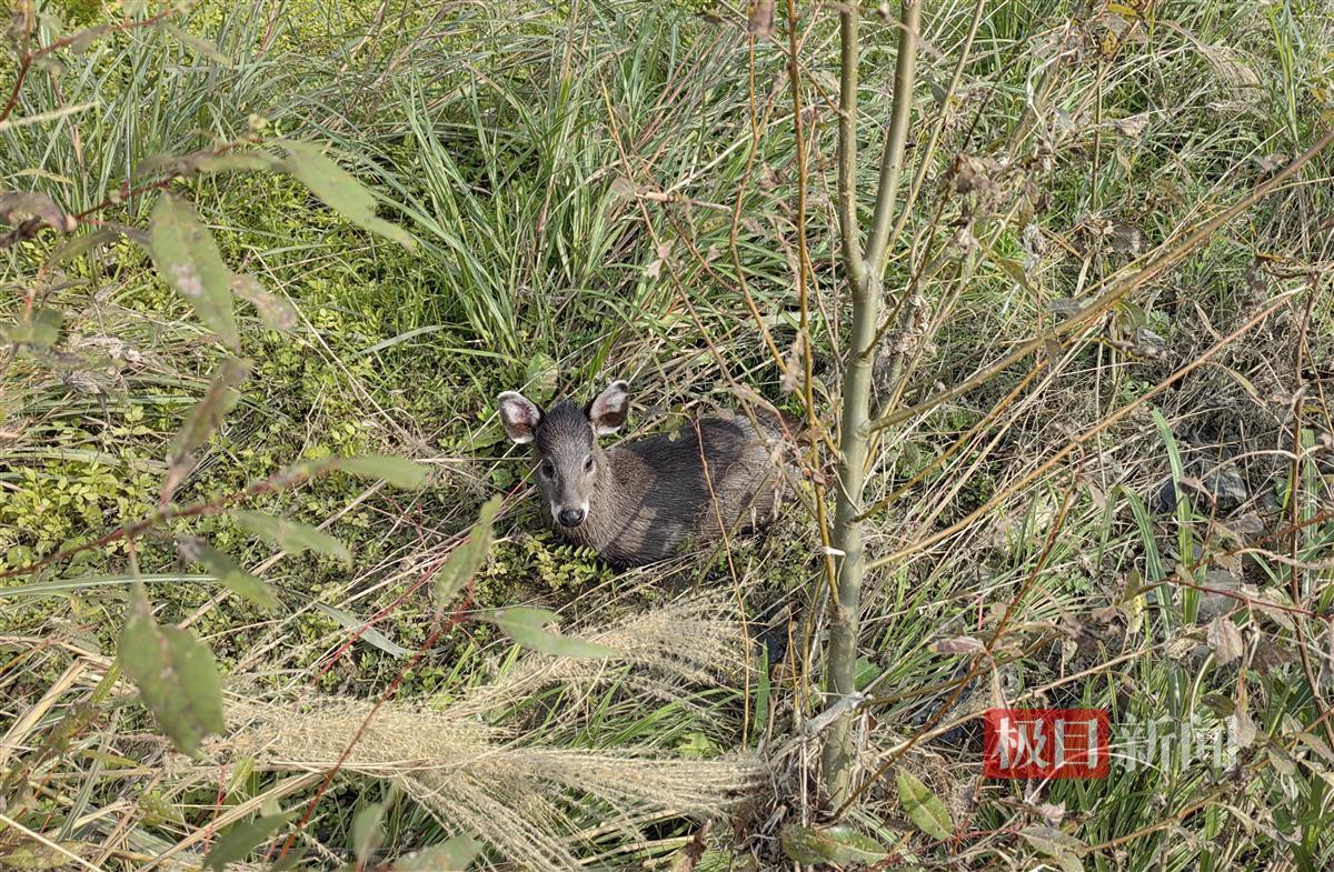 同时发现其腿部有明显的轻微擦伤,民警本想抓住它并联系救助站前来治疗,没想到麂子看到人后很慌张,一下子就窜开了。为了避免对野生动物造成二次伤害,民警决定将受惊的麂子“劝回”山林。