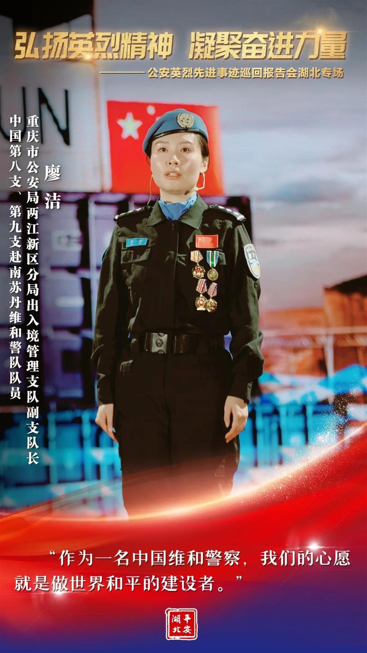 12月8日,全国公安英烈先进事迹报告团走进湖北,全省广大公安民警辅警聆听了报告。一个个公安英烈的故事感人肺腑、催人泪下,他们用责任、勇气、智慧和忠诚诠释了生命的无畏与精彩。他们的名字在警徽中闪光,他们的光荣在警旗上飞扬!
