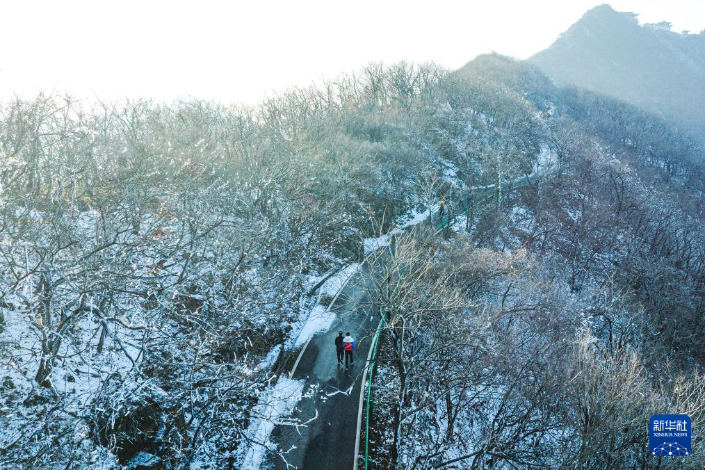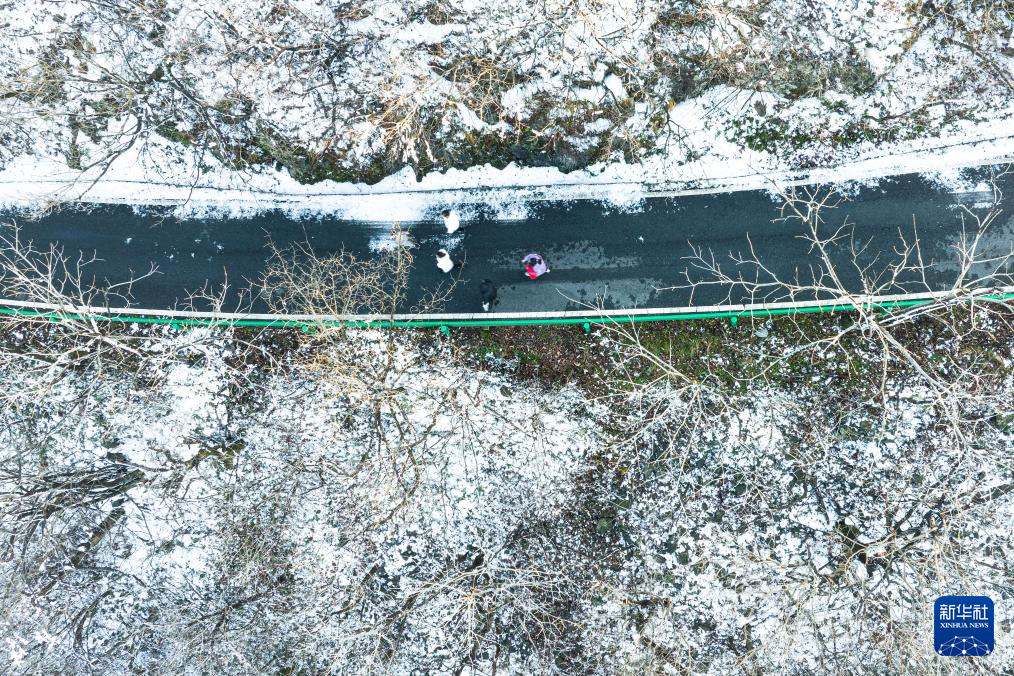 12月12日,游客在湖北省随州市大洪山风景名胜区游玩(无人机照片)。