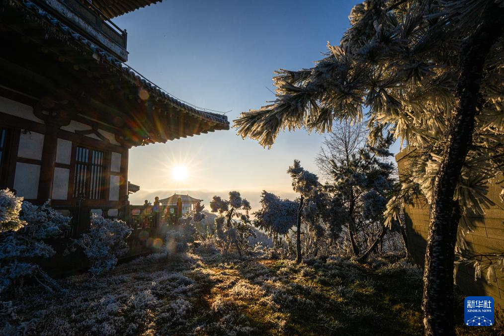 雪后初霁,湖北省随州市大洪山风景名胜区在夕阳的映照下景美如画。