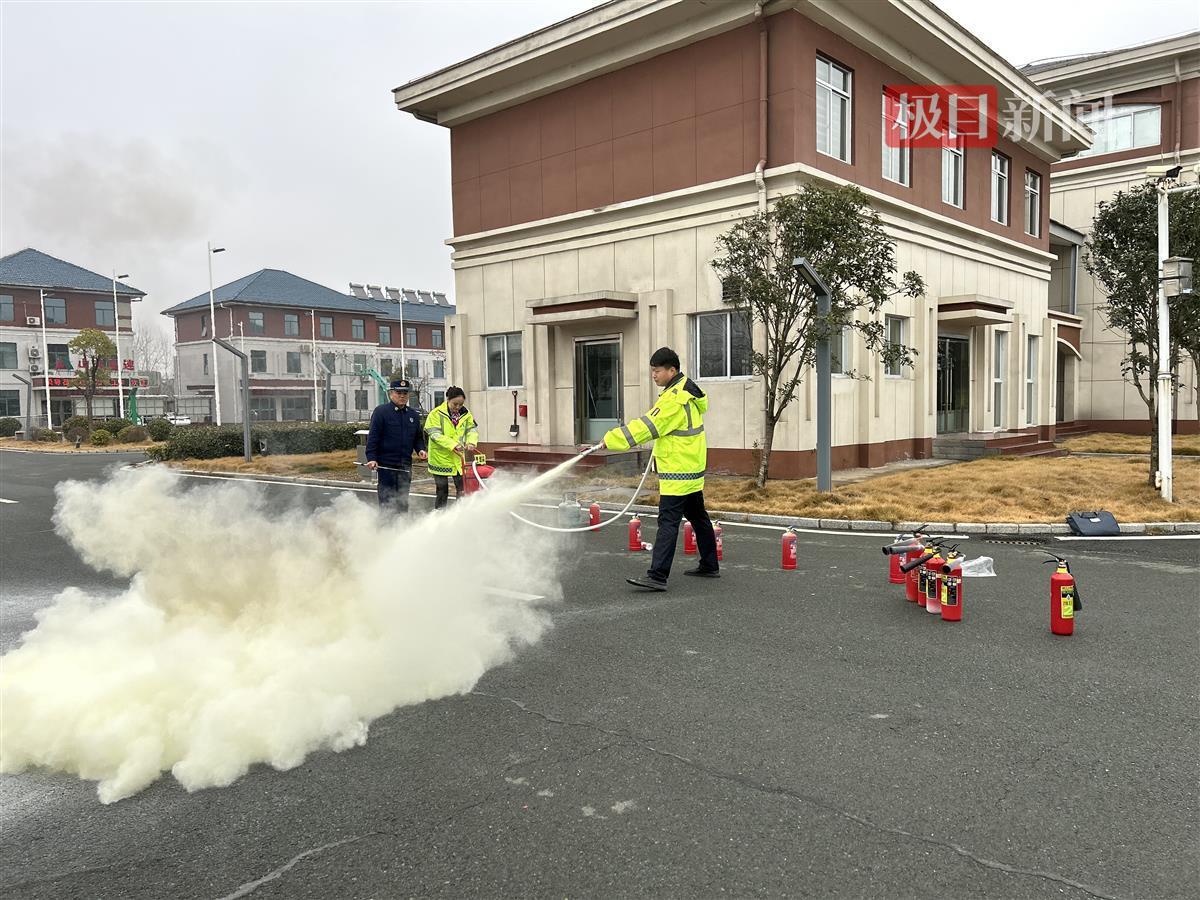 在理论授课的基础上,消防宣讲员边讲解边示范,组织参训人员体验了干粉灭火器的使用方法,实地开展了灭火演练。