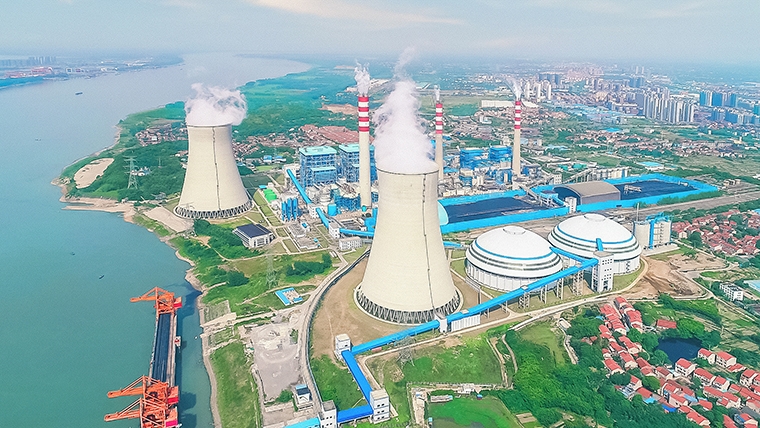 月日航拍的湖北能源鄂州电厂。全媒体记者方仲华摄