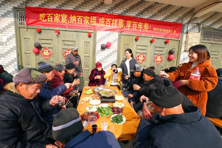 喷香扑鼻的鱼头豆腐、入口即化的红烧肉、热气腾腾的饺子……一道道色香味俱全的农家菜持续端上餐桌。“来,一起碰个杯!”大家你一言我一语,话家长里短,叙乡里乡情,现场弥漫着喜庆的气氛,充盈着浓浓的年味。