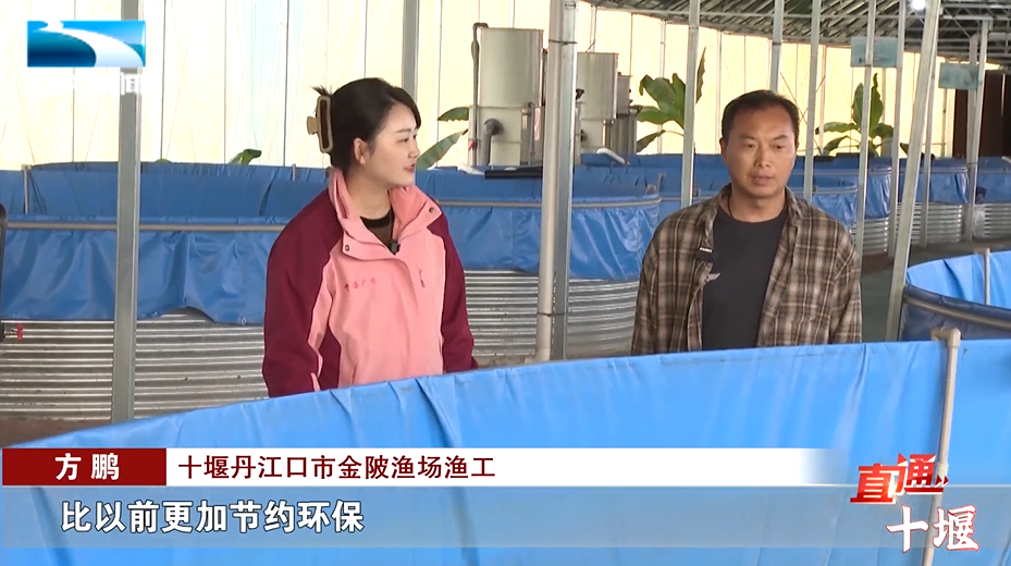 十堰丹江口市金陂渔场渔工方鹏:“以前我们是在丹江口库区大水面养殖,网箱养,但是现在采取的这种陆基循环桶养殖,比以前更加节约环保。”