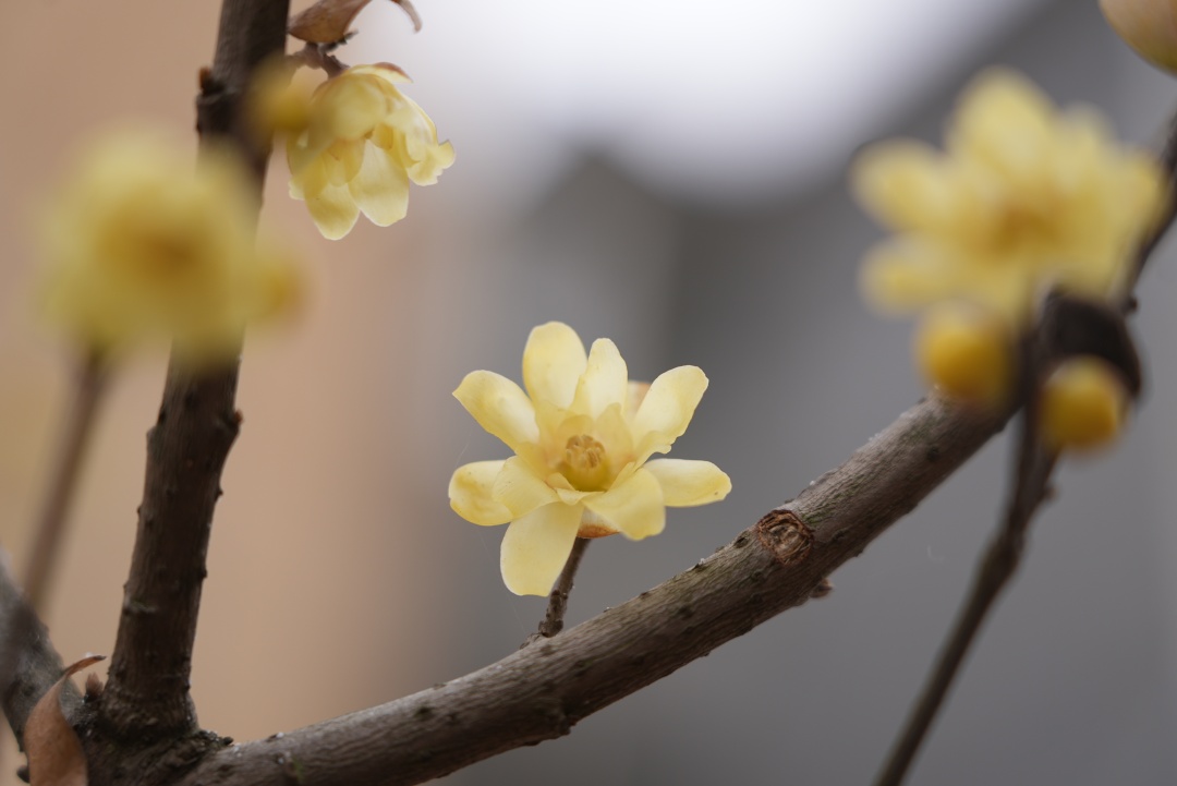 怡颜随浅淡,疏骨任横斜。一朵朵淡黄色的花朵,晶莹剔透,像星星点点的繁星,在枝头轻轻摇曳。腊梅的香气独特而淡雅,虽不浓烈,却足以穿透寒冷的空气弥漫开来,让人心旷神怡。