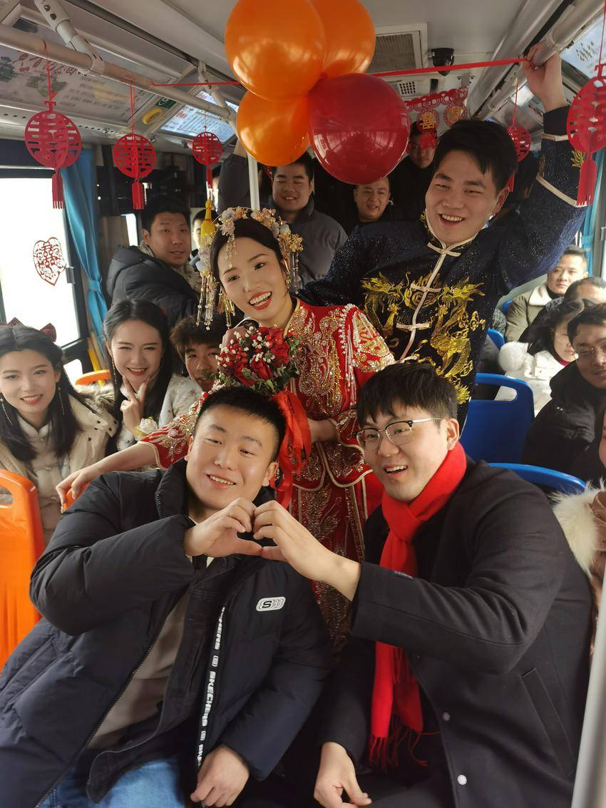 新郎施远洋说:“不是婚车请不起,而是请公交更有性价比,是一种新的时尚,也挺拉风的。”
