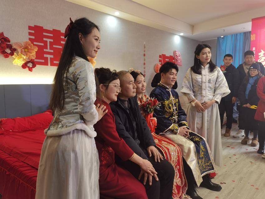 伴娘郑诗琪说:“我觉得非常新潮,非常时尚,然后也非常的经济实惠,然后感觉很适合大家一起和亲友互动热闹,然后氛围感特别好,然后从经济上面也能够减轻很大的一个压力,我觉得是一个很好的参考形式,我会在这个基础上可以再优化一下。”