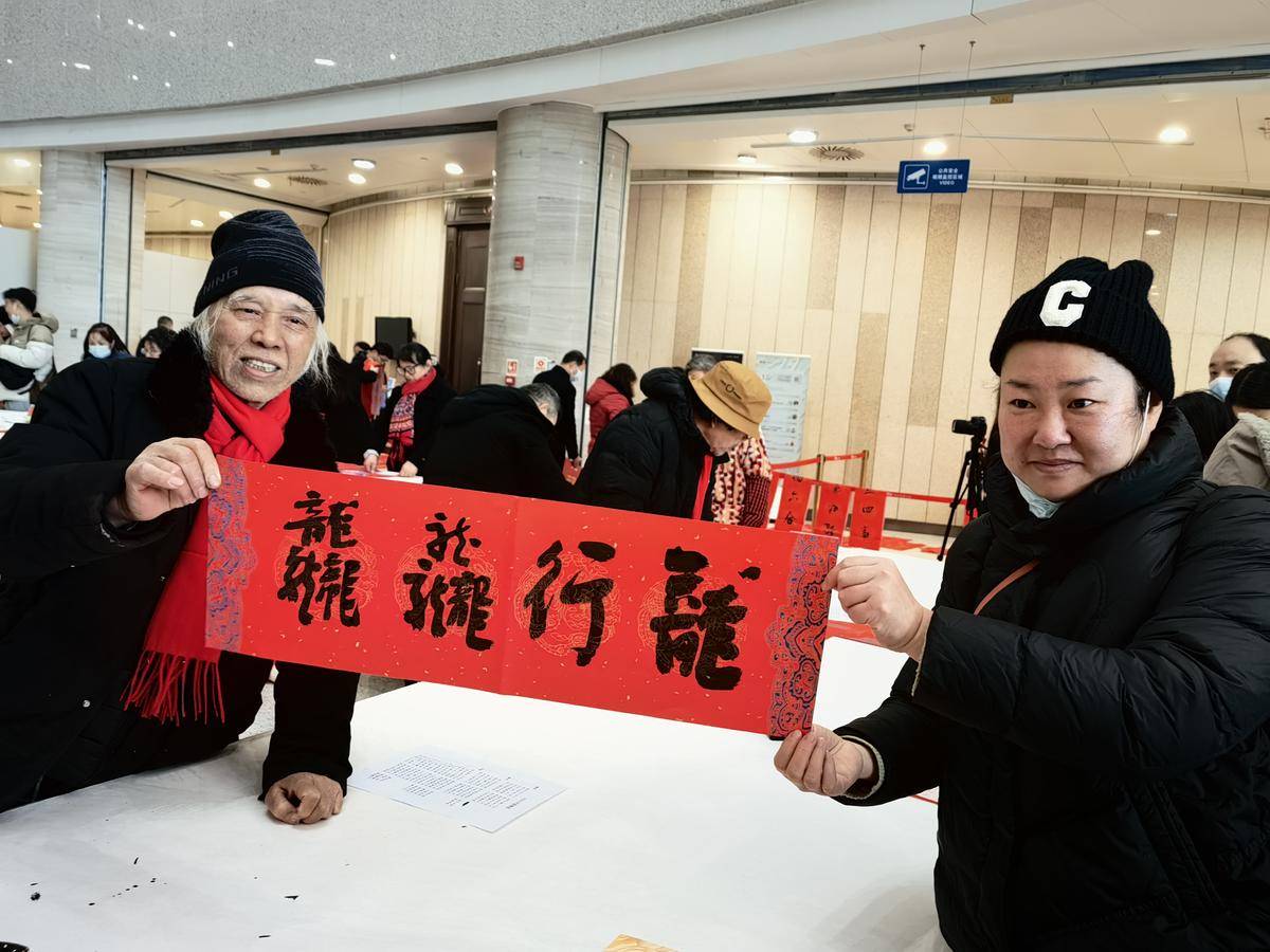 孩子的话引来大家的笑声。闫妈妈纠正说:“是来学习。”桂建民笑着说:“对呀,我们可以相互借鉴。你想让我写什么?”闫泓霏忙铺好一方红纸,“桂爷爷,您给我写个胖胖的龙吧。”
