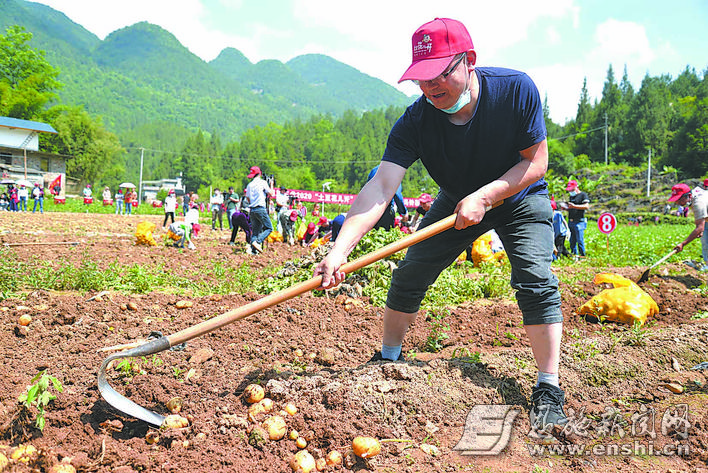 三岔镇的土豆卖得火热,与土豆相关的旅游、文化等产业也日渐成型。2019年,恰逢第21届中国马铃薯大会在恩施州召开,“土豆花儿开”文化旅游推介活动与中国马铃薯大会来了一次美丽的邂逅,乡村旅游的春风吹进三元坝千家万户。