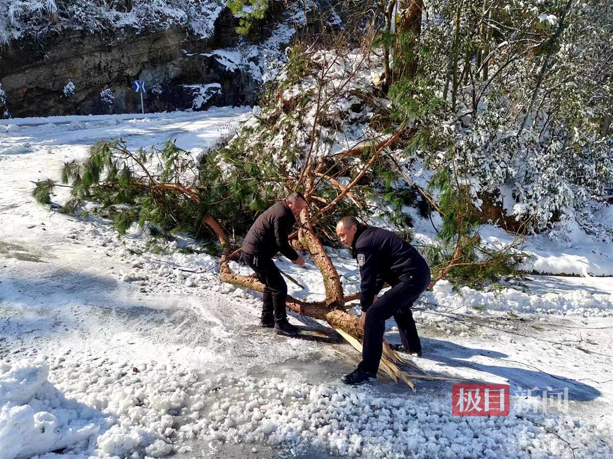 近日,新一轮低温雨雪冰冻天气席卷湖北。2月4日,极目新闻记者从湖北咸宁通山县公安局了解到,为应对当地部分道路,特别是九宫山风景区路段出现积雪结冰等问题,警方迅速启动应急管理处置预案,加强巡查管控,服务群众平安出行。