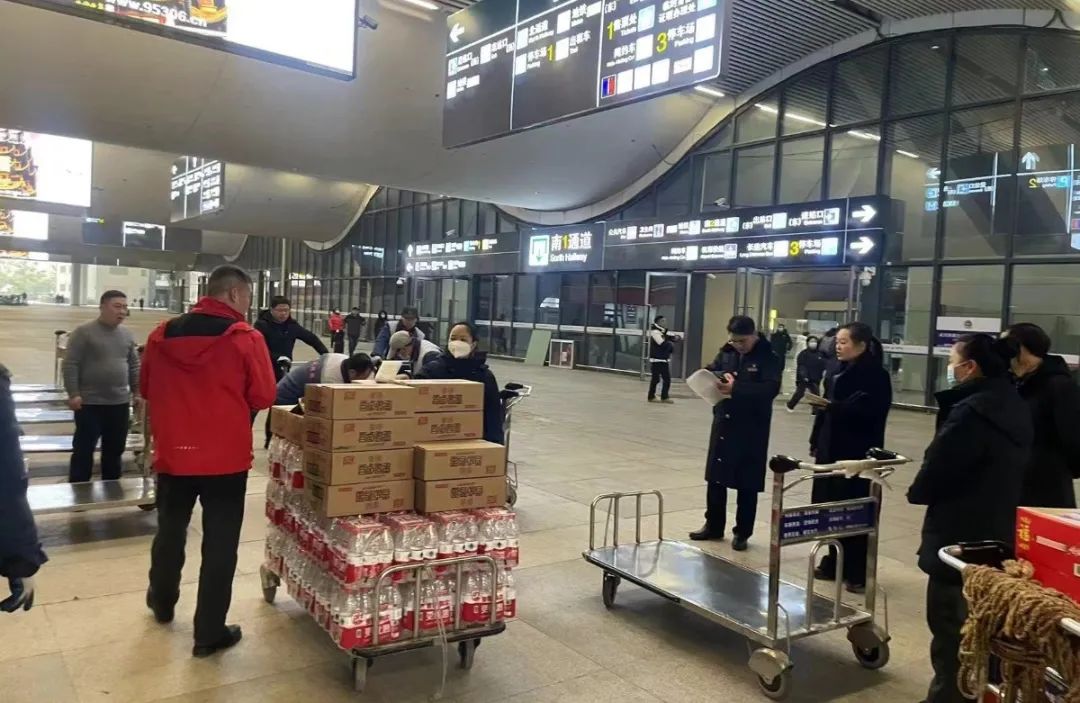 武汉站加强与站区办、武铁旅服、武汉地铁、公交公司沟通联系,在夜间增加便民服务店24小时为旅客服务,联系出站层餐饮门店为旅客提供热豆浆,同时增加热饮柜,全天候保障旅客热水供应。