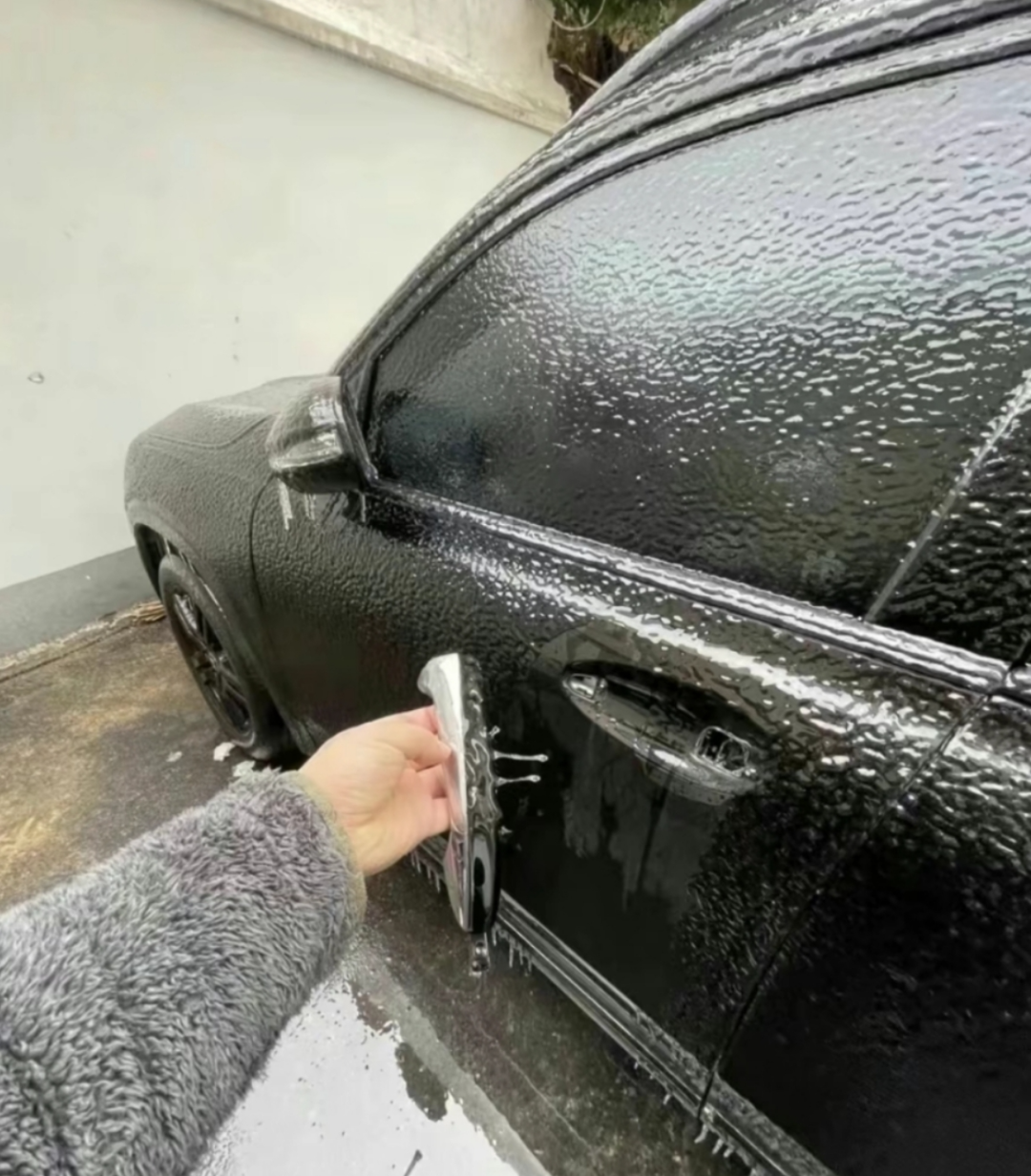 停在户外的车“套上了一层钢化膜”,正式变身为电冻车。