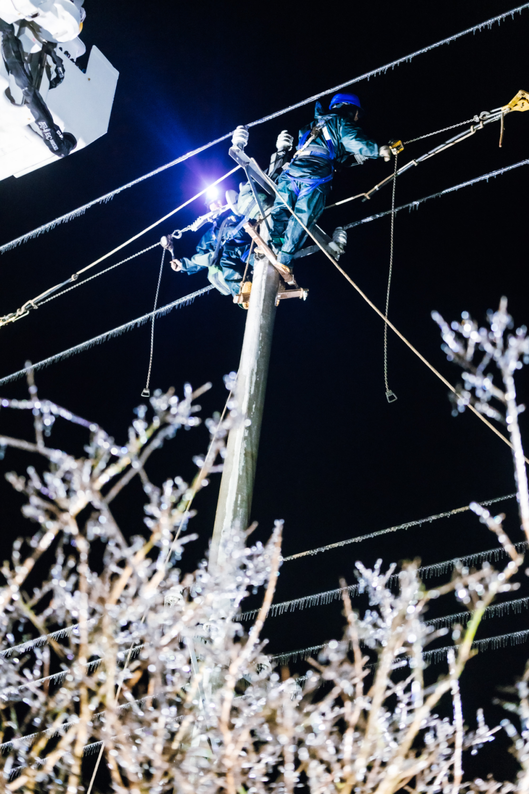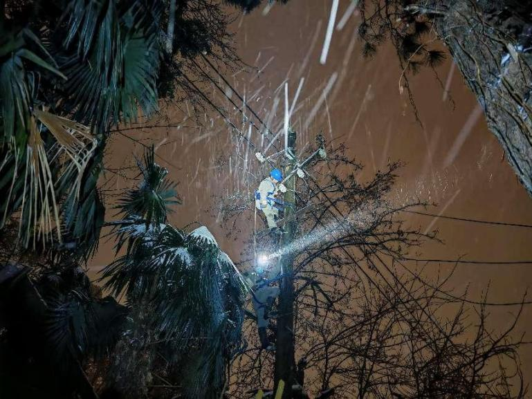 (图源|网络) 武汉供电职工冻雨寒夜高空作业,两天两夜持续抢险