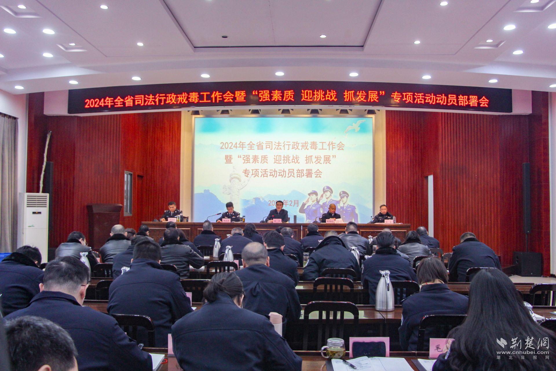 荆楚网(湖北日报网)讯(记者 邱玲鹏 周光洁 通讯员 钟美琪)2月6日,2024年全省戒毒工作会暨“强素质 迎挑战 抓发展”专项活动动员部署会召开,回顾总结2023年度全省司法行政戒毒工作,系统分析当前面临的新形势、新任务,研究和部署安排2024年工作任务,动员全系统广大民警振奋精神、凝聚力量、砥砺奋进。省司法厅党委委员、副厅长明平出席会议并讲话。省戒毒管理局主要负责人戴智文作工作报告并宣读专项活动实施方案,省戒毒管理局党委班子成员周水庆、纪念、于加珍参加会议。