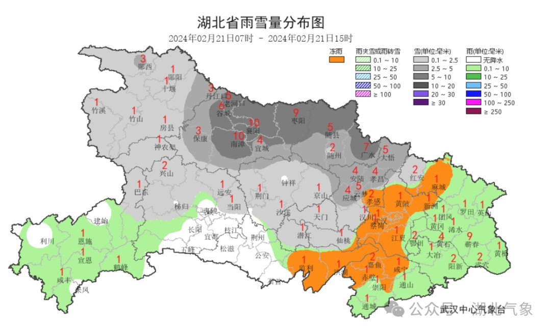 湖北出现雪、冰粒、冰雹、冻雨等降水相态
