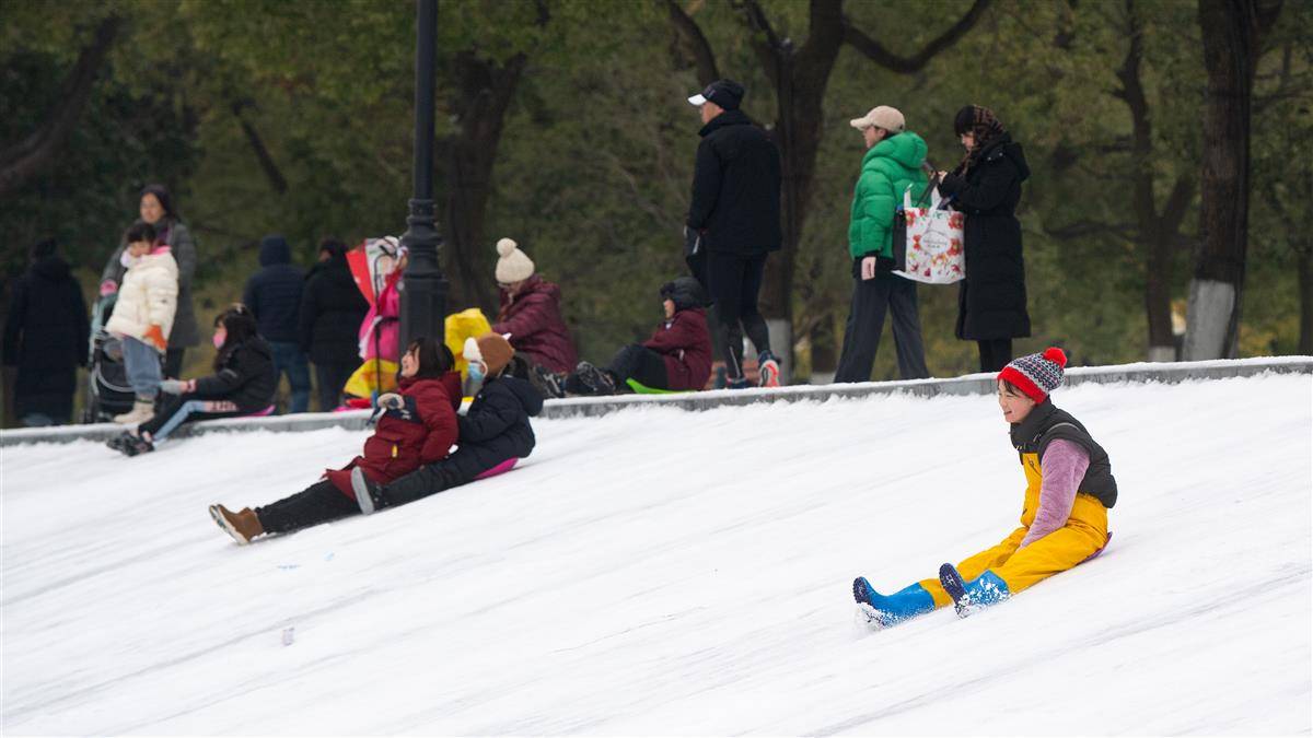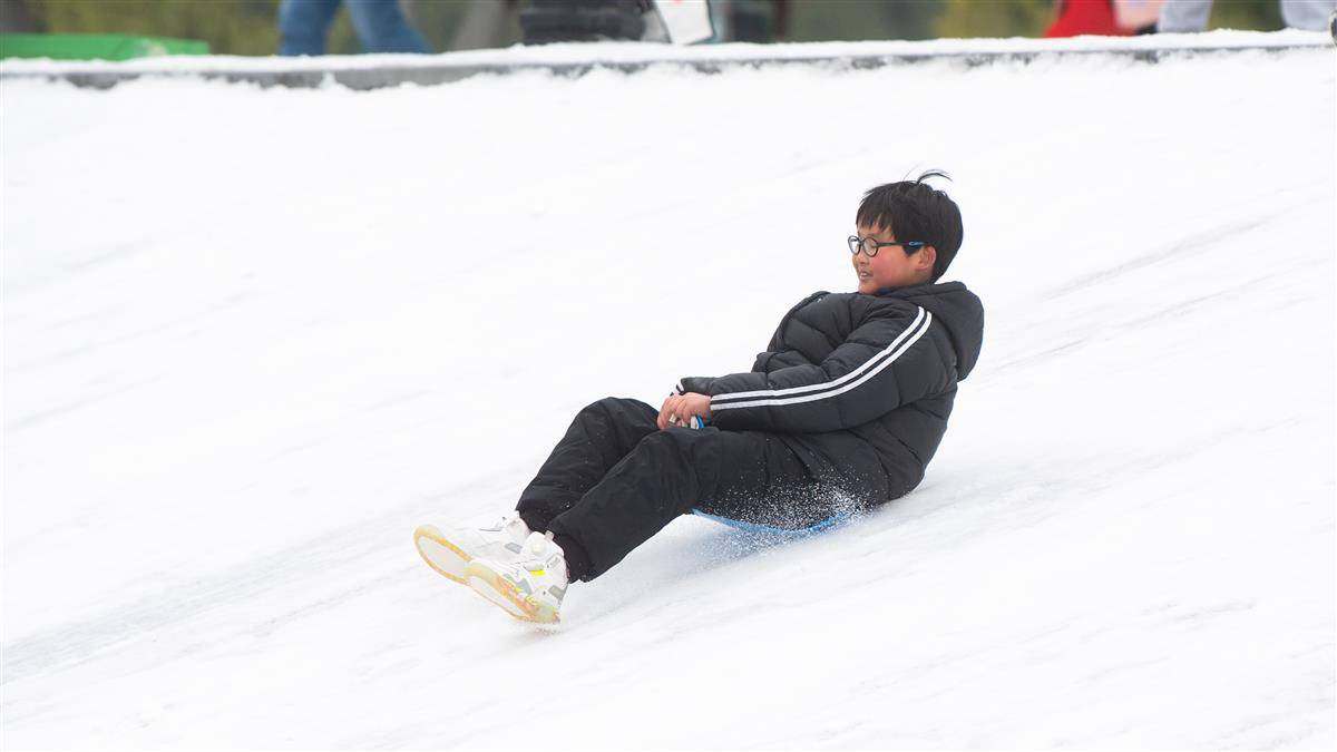 汉口江滩成天然滑雪乐园